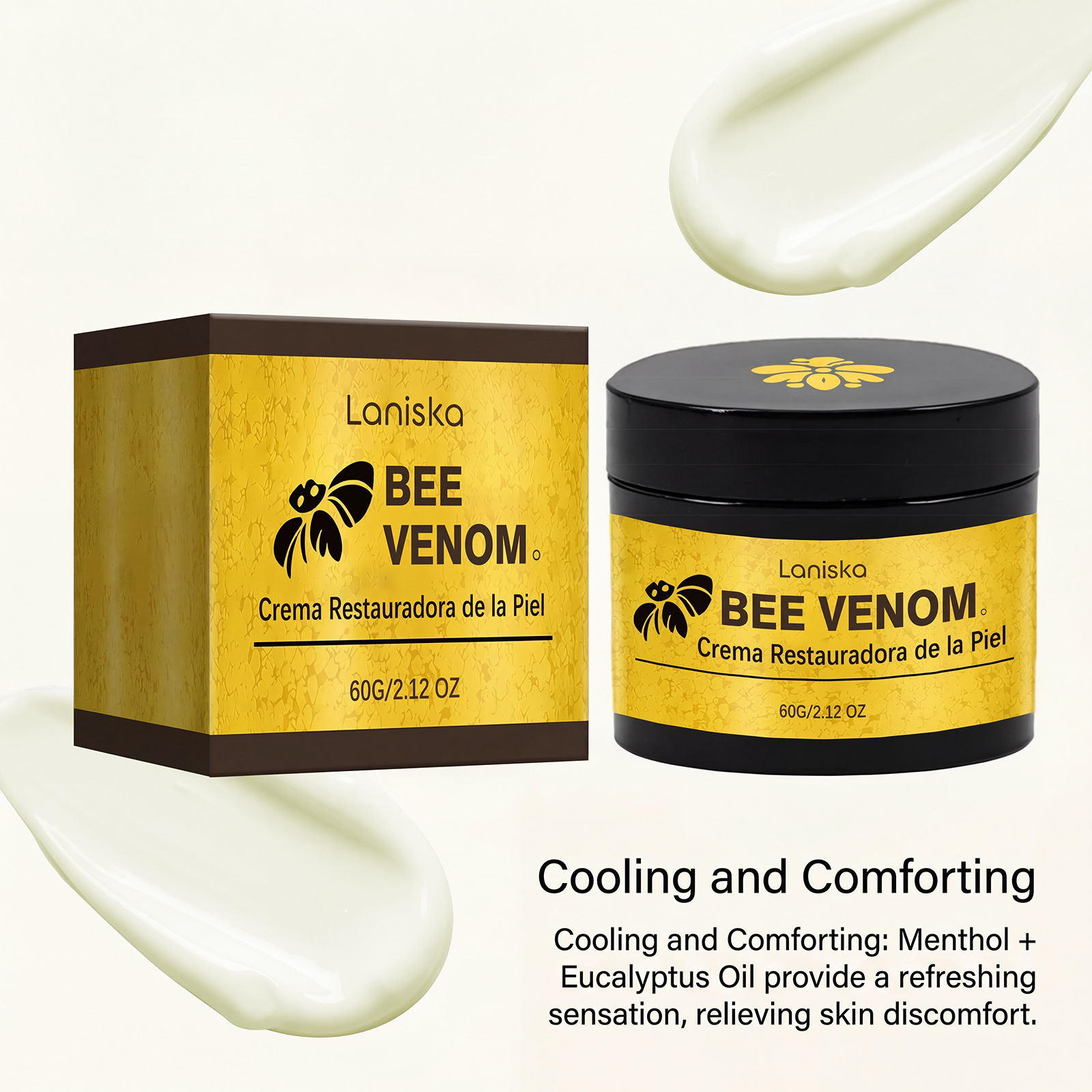Bee venom, honey, jojoba seed oil, shea butter, hyaluronic acid, aloe vera extract, menthol and cineole.