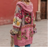 Skin-friendly, Printed, Crew-neck, Loose-fitting Long Sweater Coat
