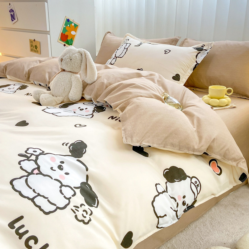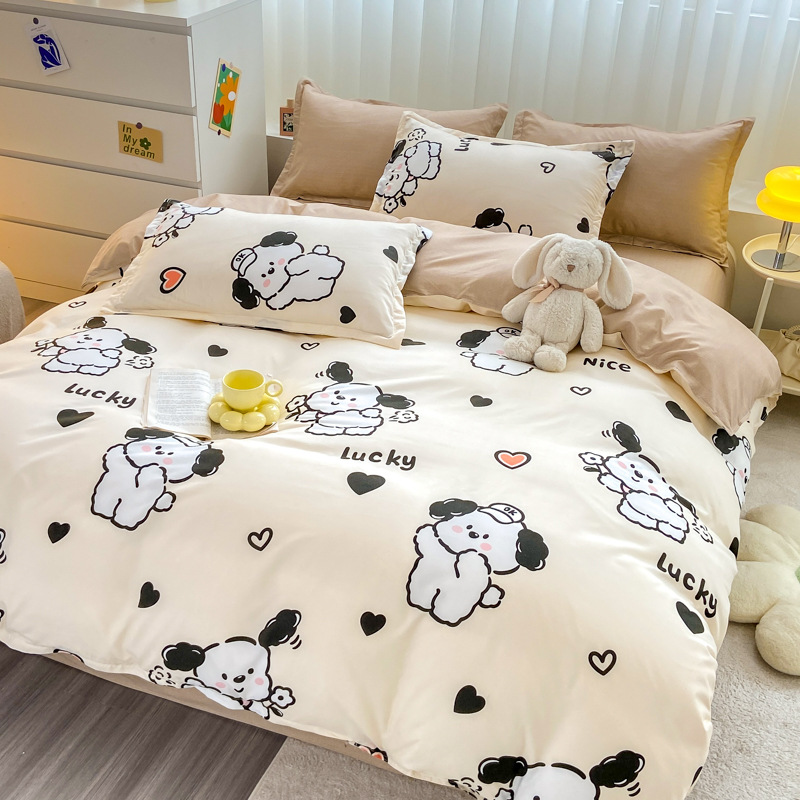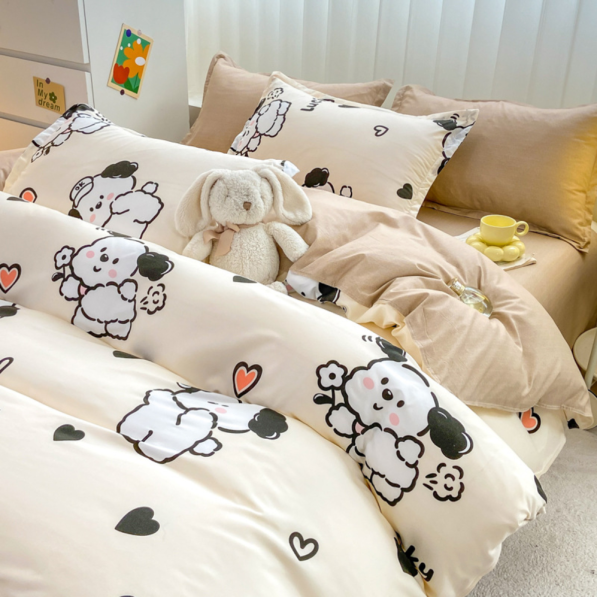 Size specifications: 1.2 three-piece set (quilt cover 150 × 200m),1.5 four-piece set (quilt cover 150 × 200m),1.8 four-piece set (quilt cover 180 × 220m),2.0 four-piece set (quilt cover 200 × 230m),2.2 Four-piece set (quilt cover 220 × 240m)