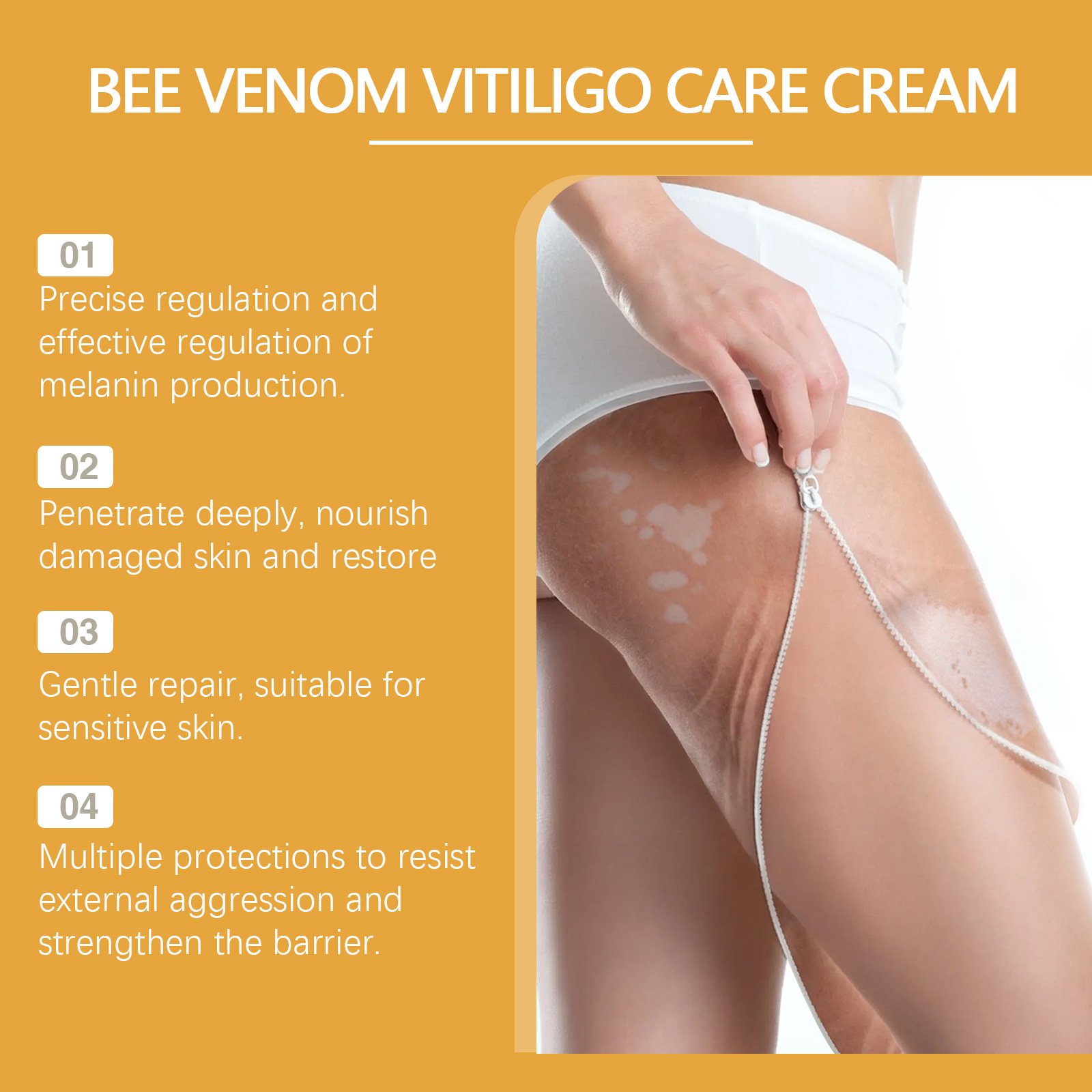 Ingredients: bee venom, fructus psoraleae fruit extract, chamomile extract, Safflower extract, tocopherol (vitamin E)