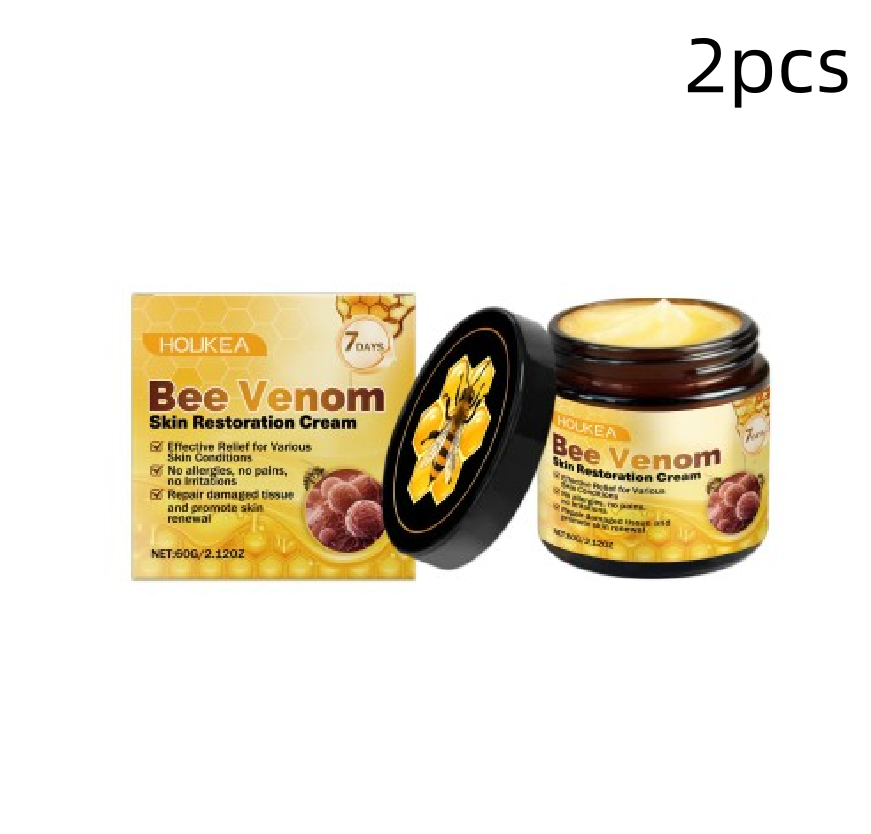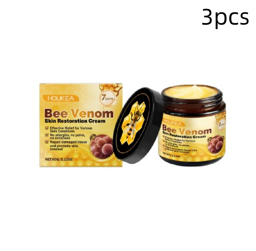 Bee venom, peppermint leaf extract, tea tree oil and Arnica extract.