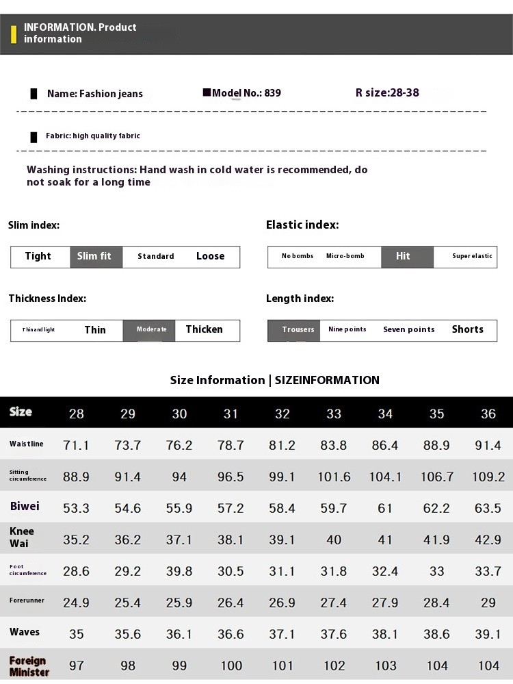 Size: 28, 29, 30, 31, 32, 33, 34, 36, 38
