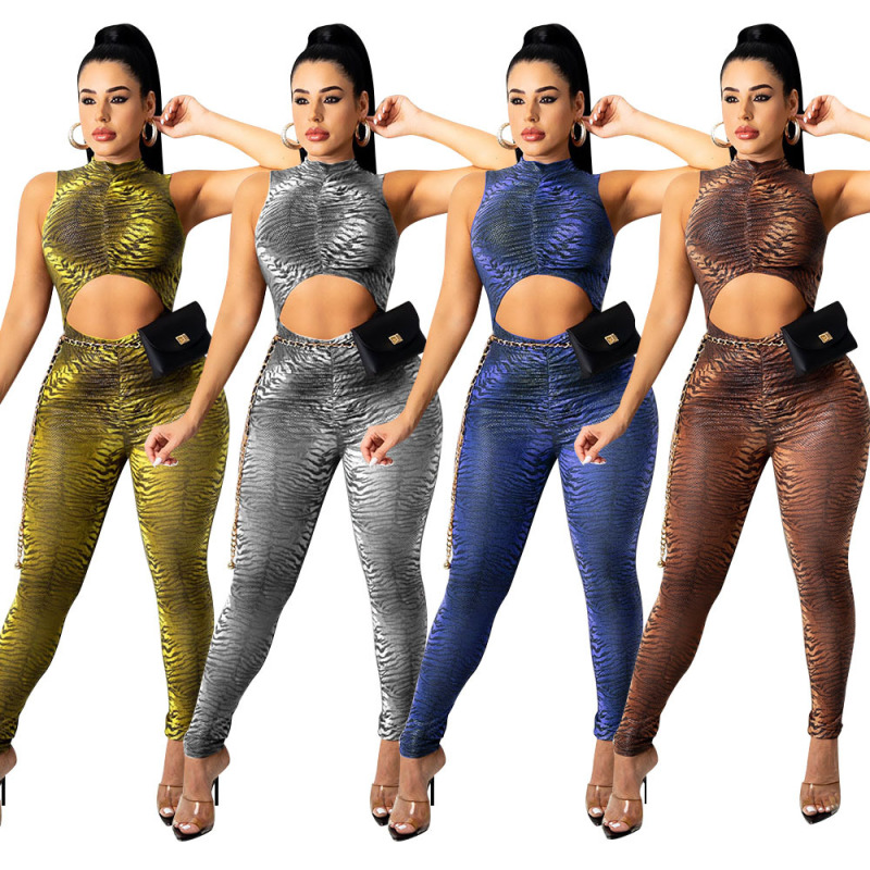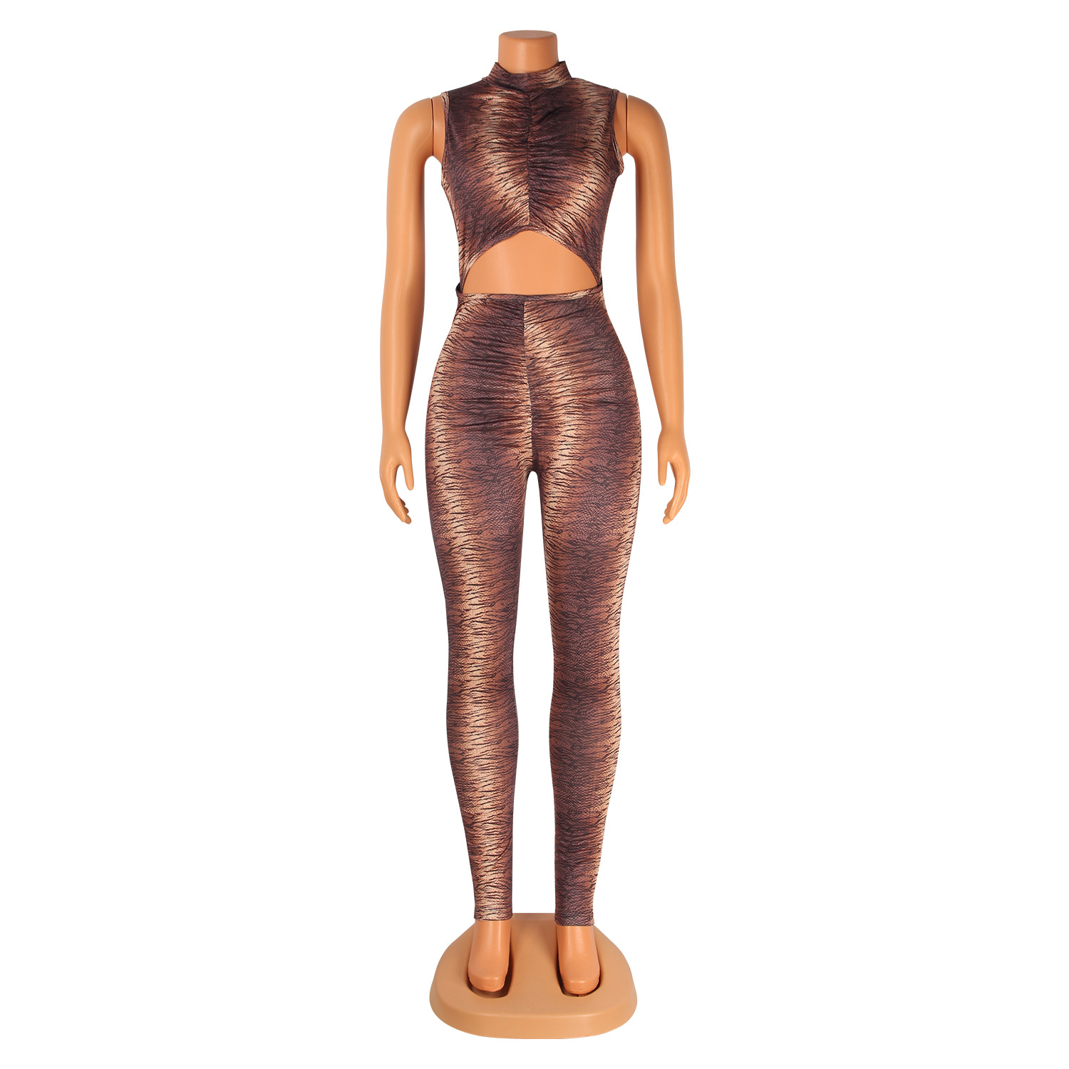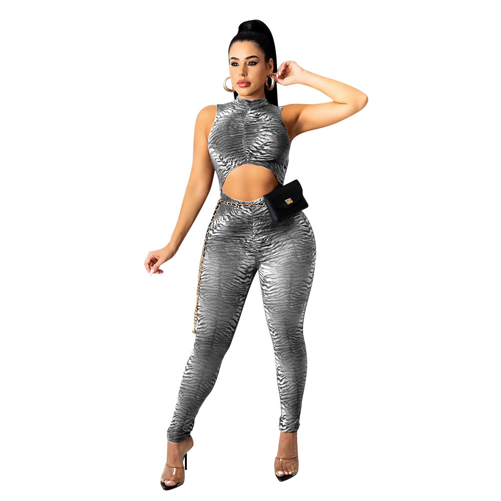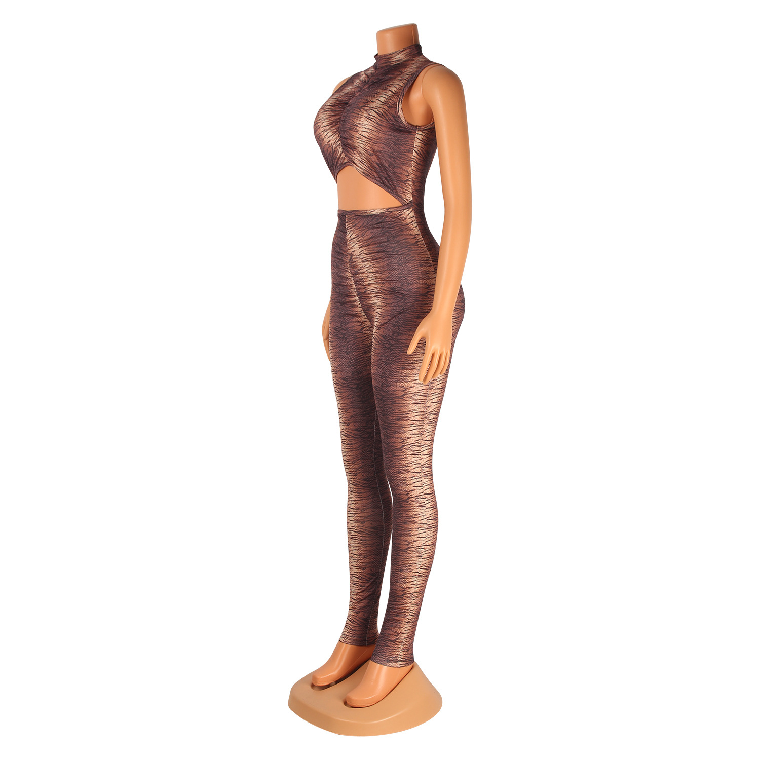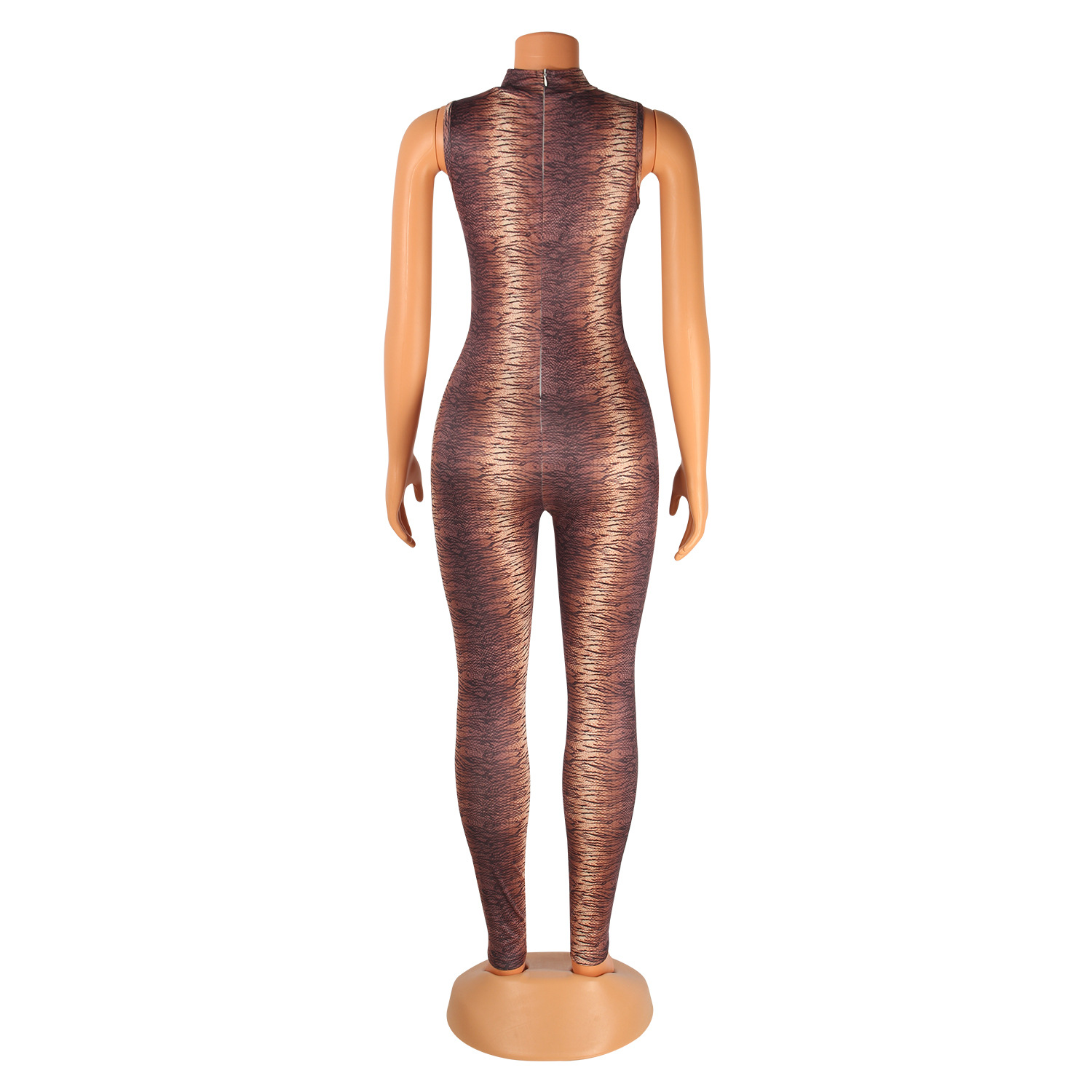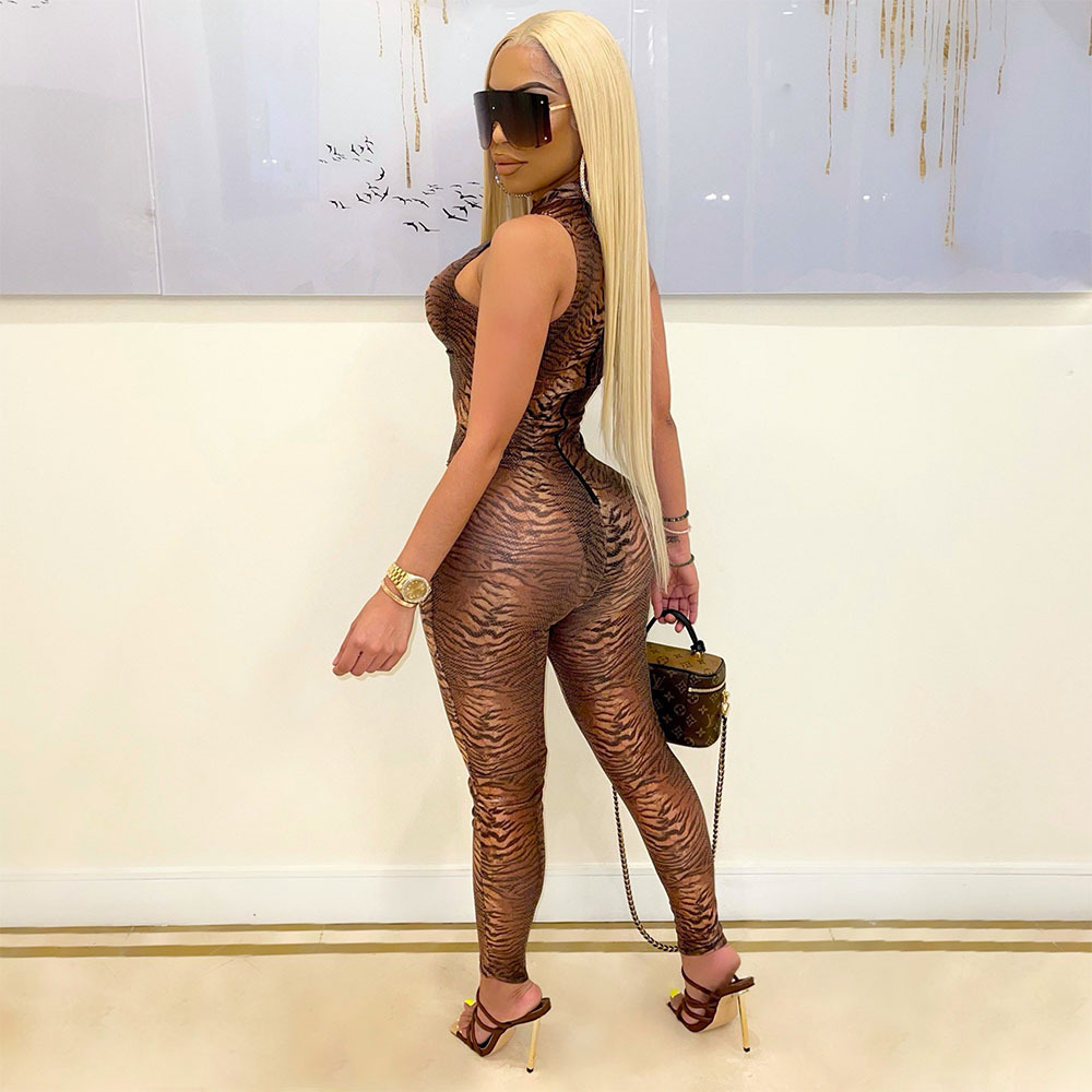 Skinny Sexy Cutout Printed Tiger Jumpsuit