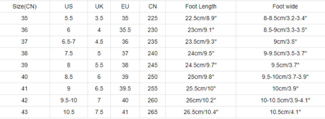 Size: 36, 37, 38, 39, 40, 41, 42, 43