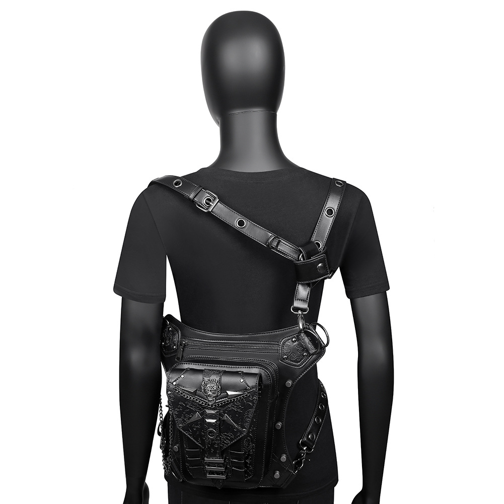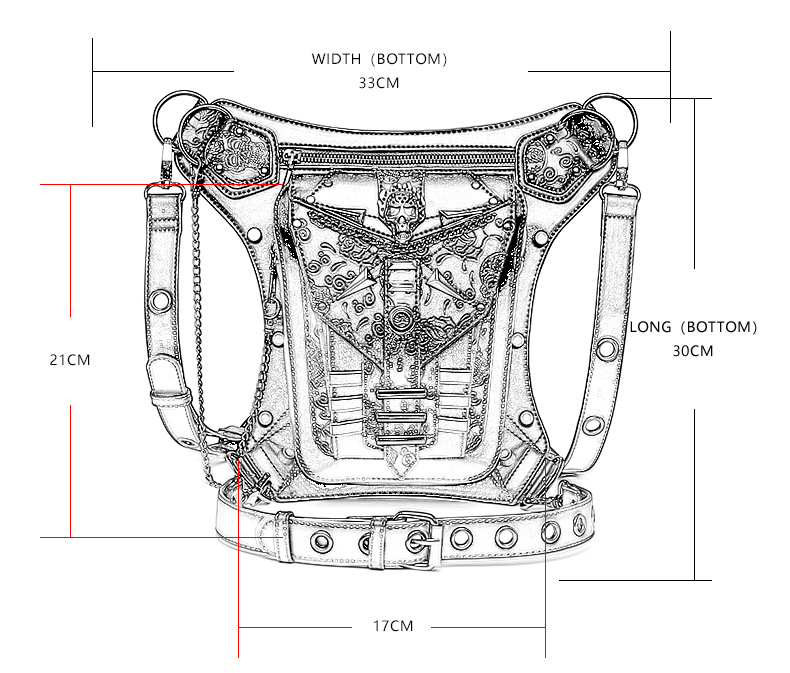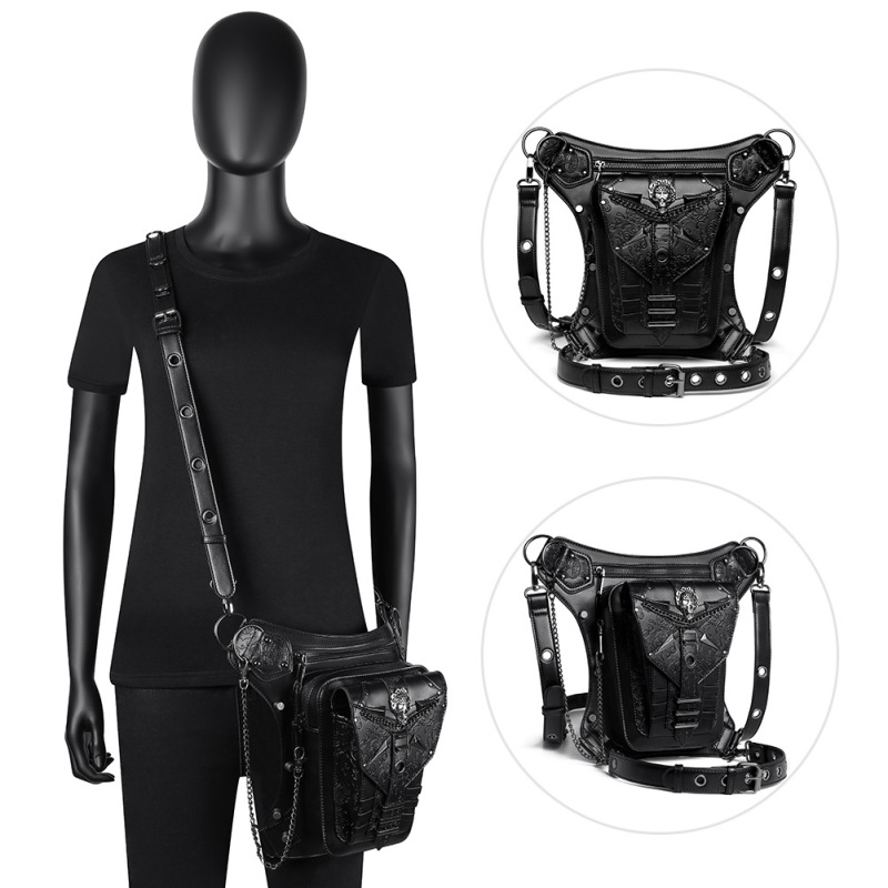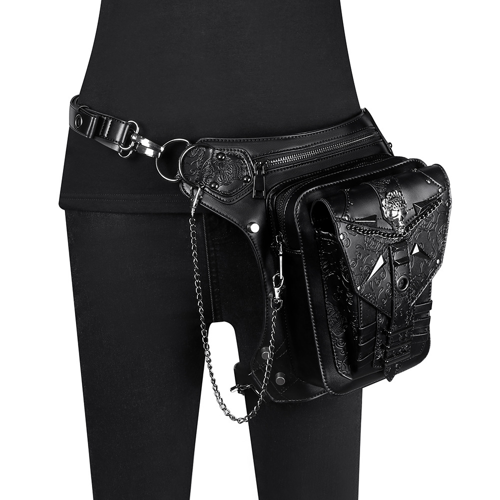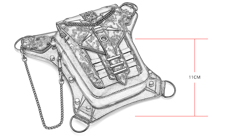 Popular elements: rivets, skulls, chains, motorcycles, embossing