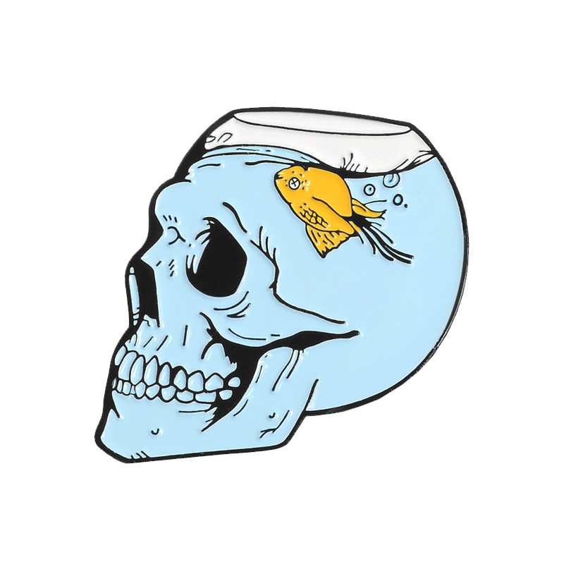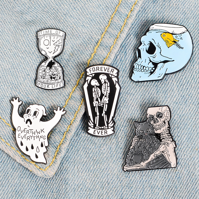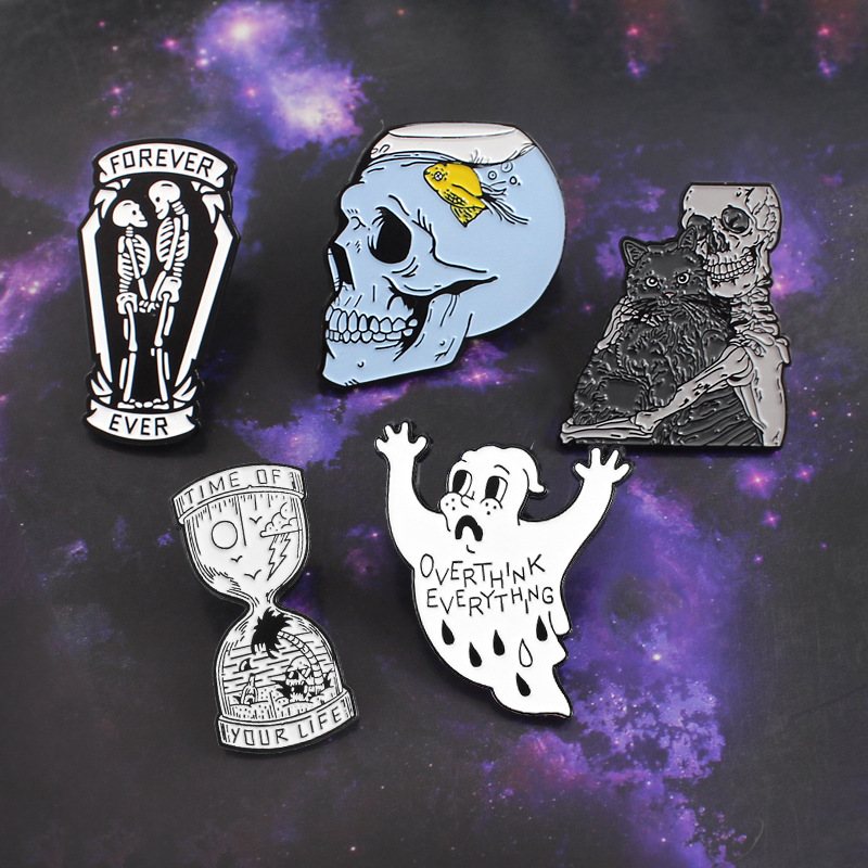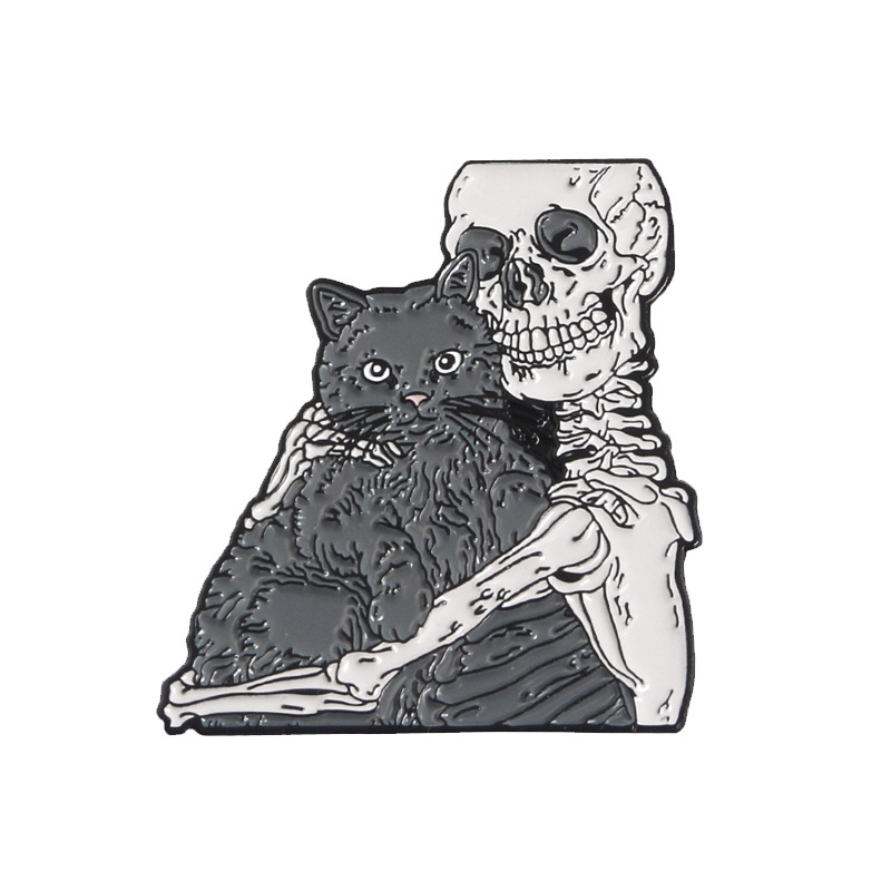 European and American Creative Skull Series Brooch Skull Fish Skull Hug Cat Funnel Bottle Landscape Combination Brooch