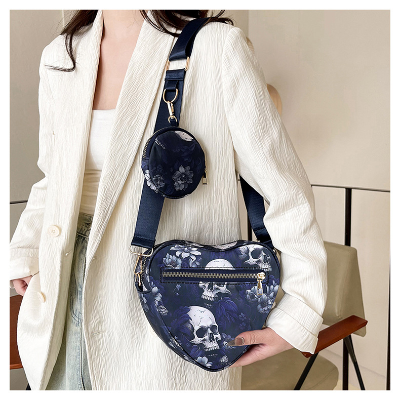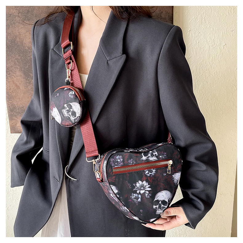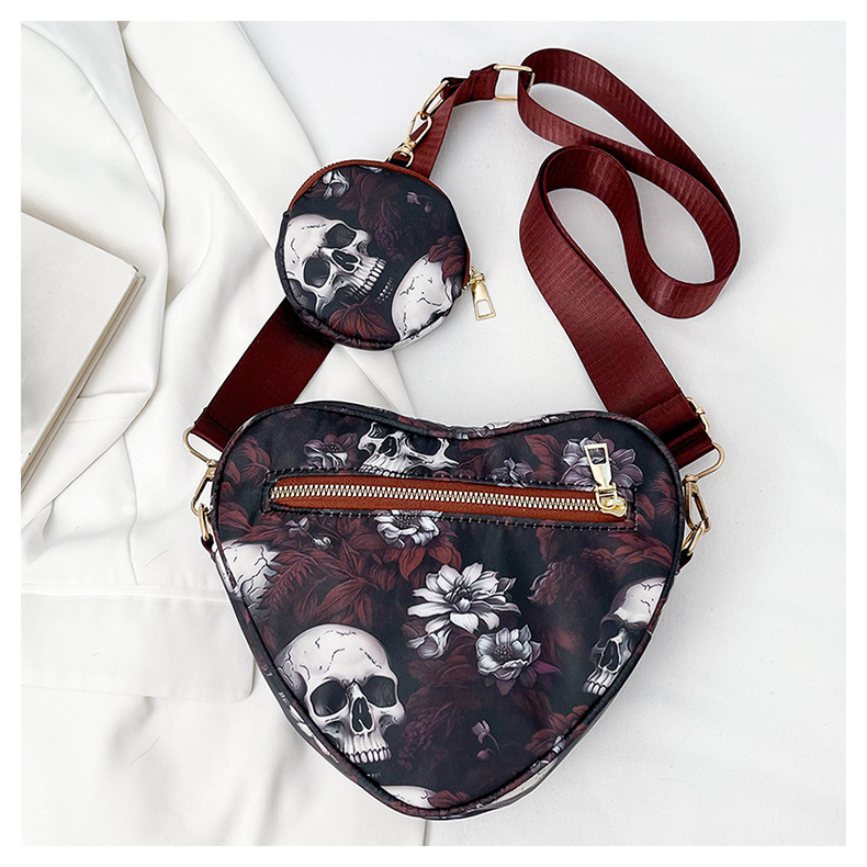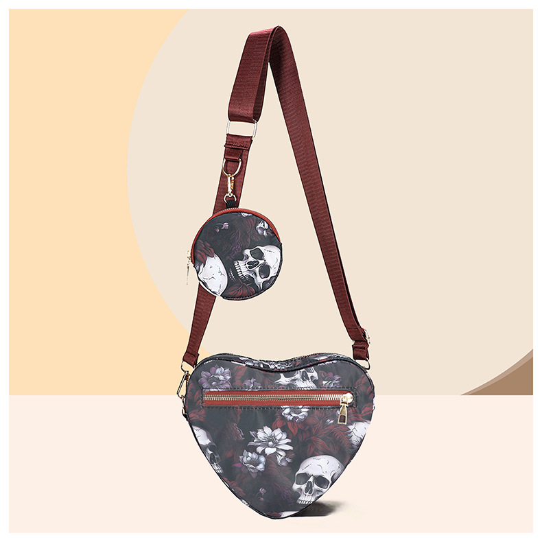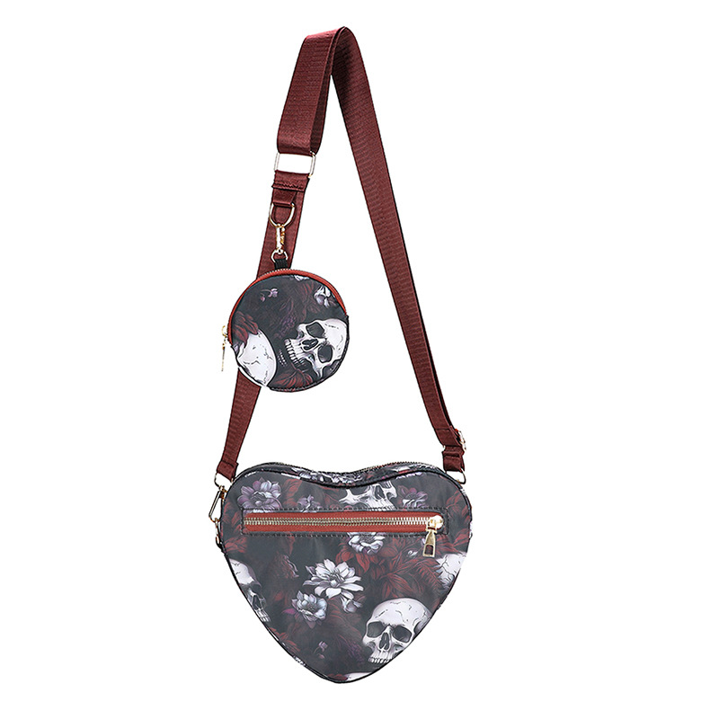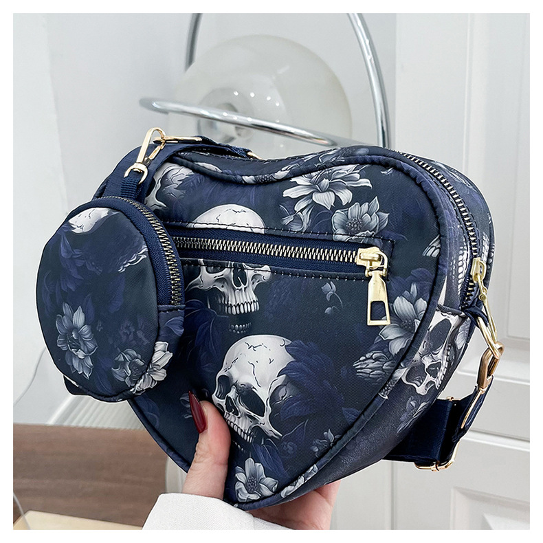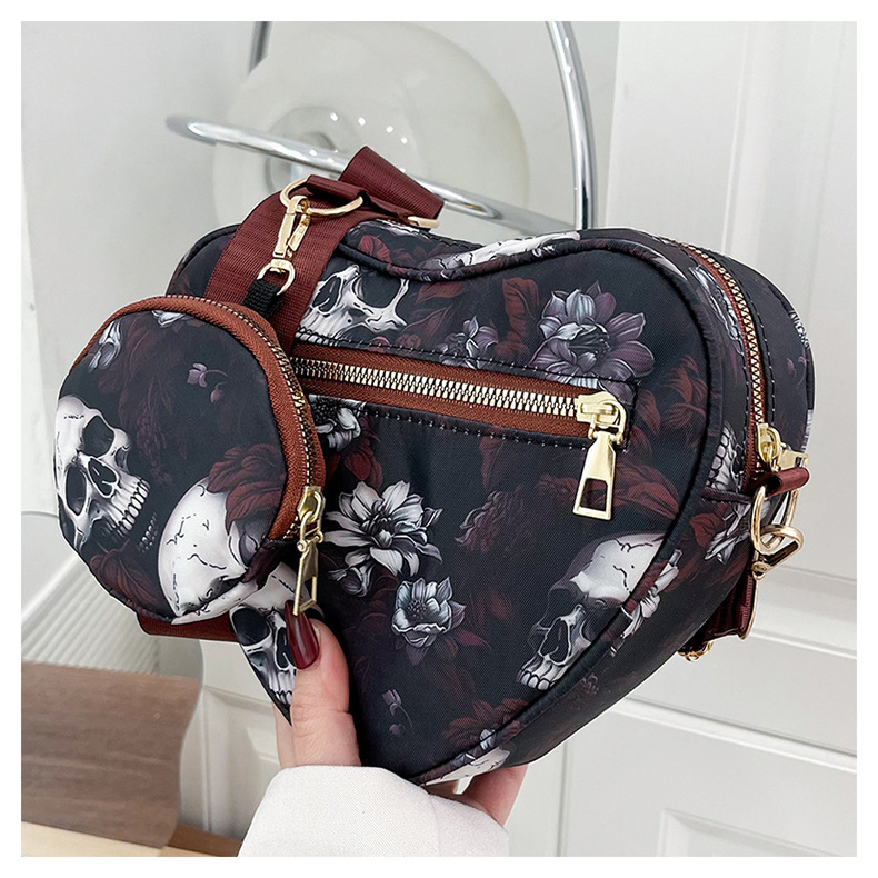 Skull Flower Printed Waterproof Oxford Cloth Large Capacity Versatile Shoulder Bag Detachable Coin Purse