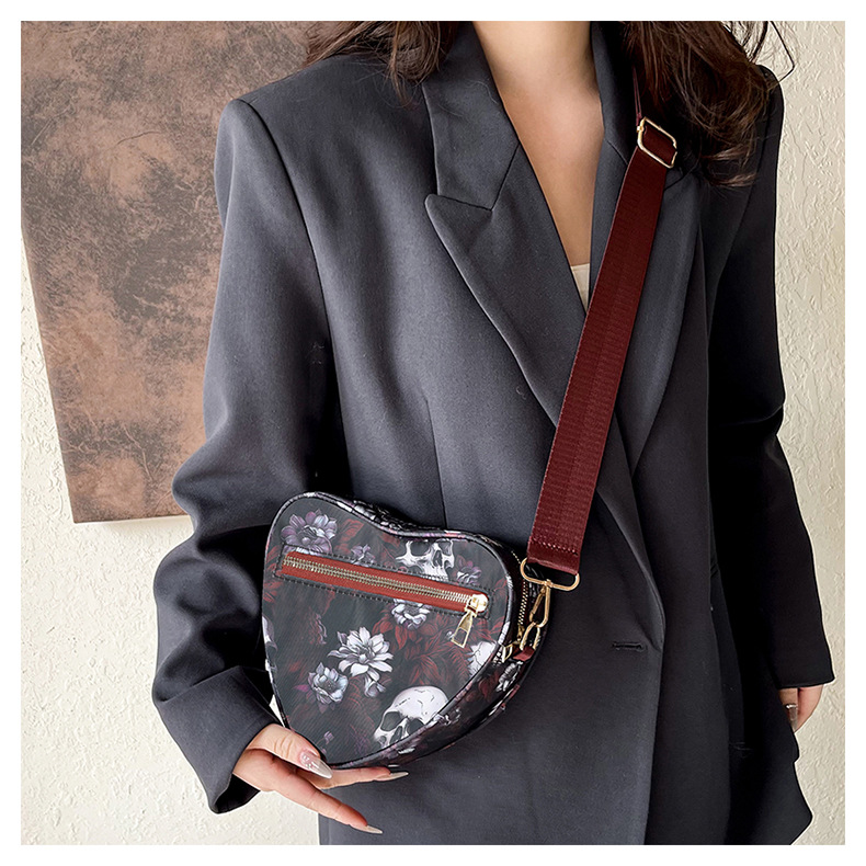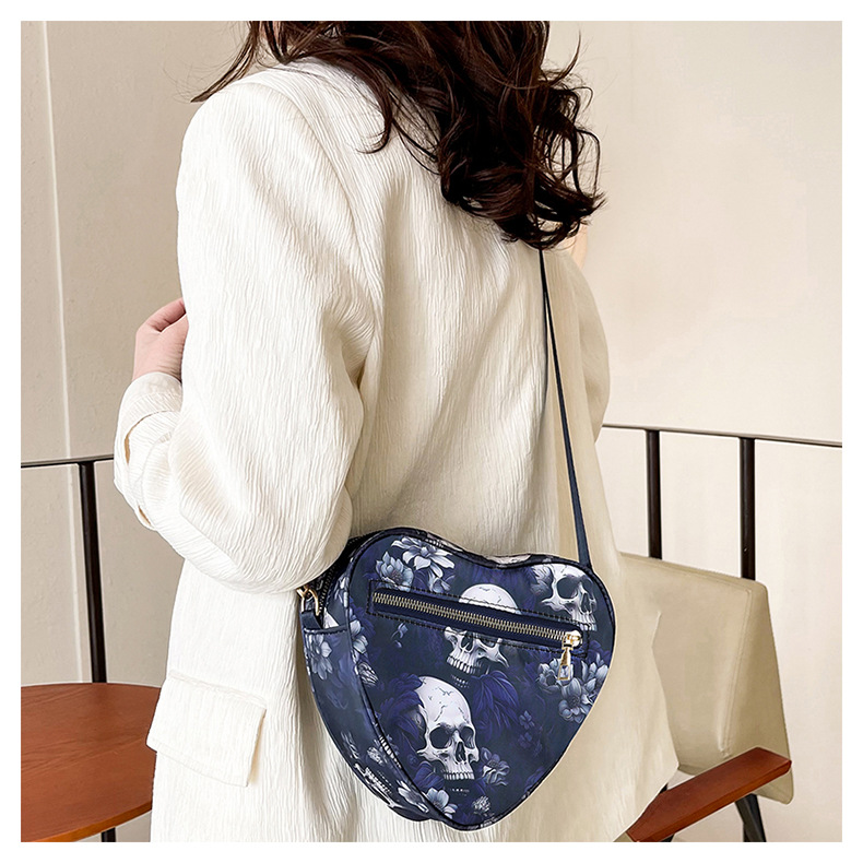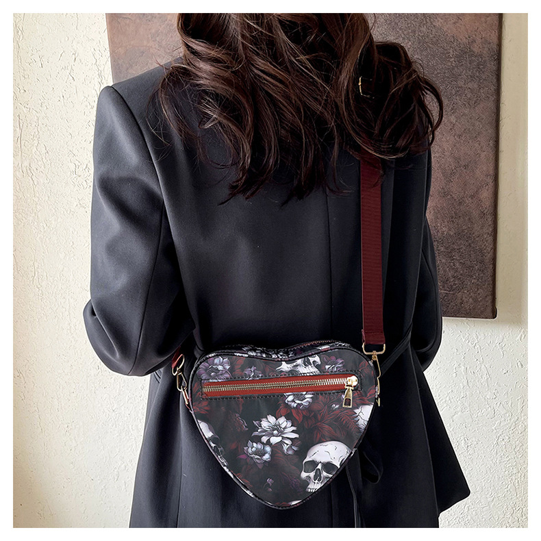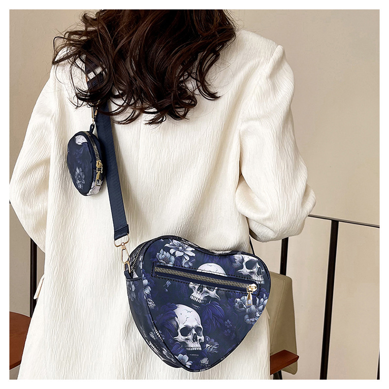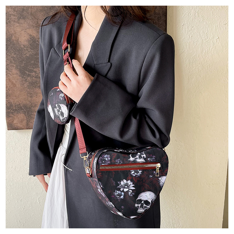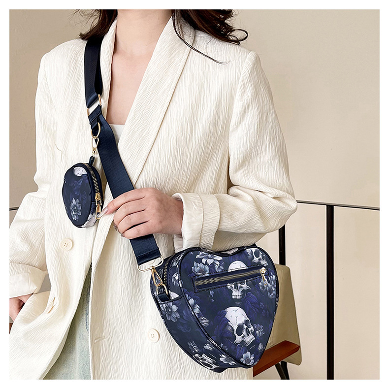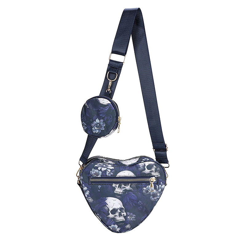 Skull Flower Printed Waterproof Oxford Cloth Large Capacity Versatile Shoulder Bag Detachable Coin Purse