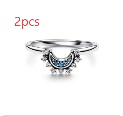 Sky Blue Glowing Moon And Sun Zircon Ring