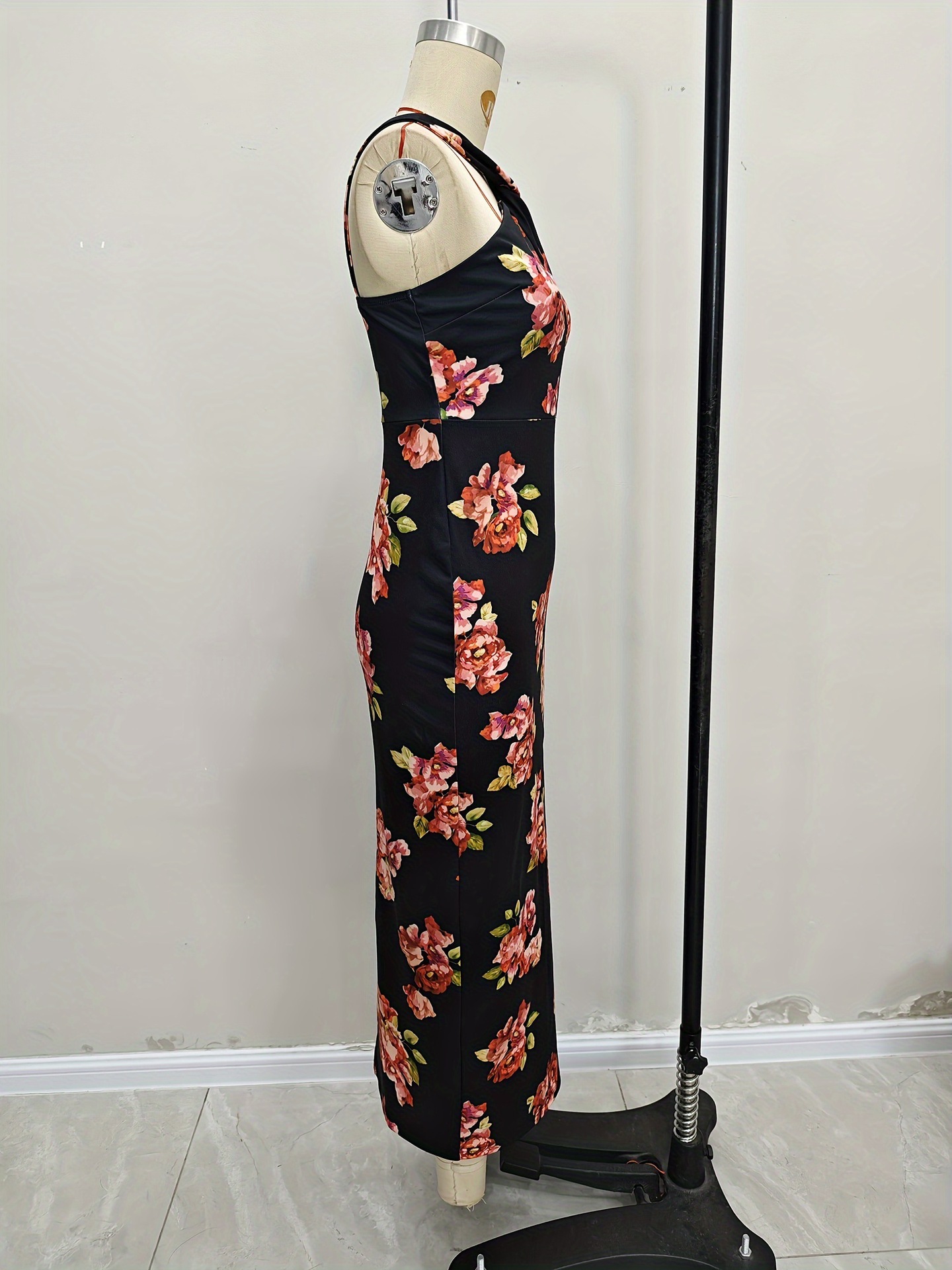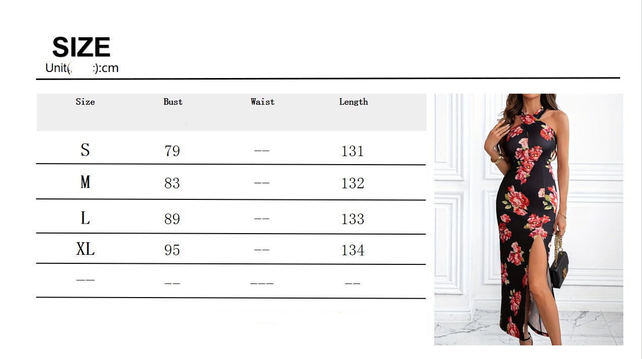 Slanted Shoulder Printed Bag Hip High Slit Dress