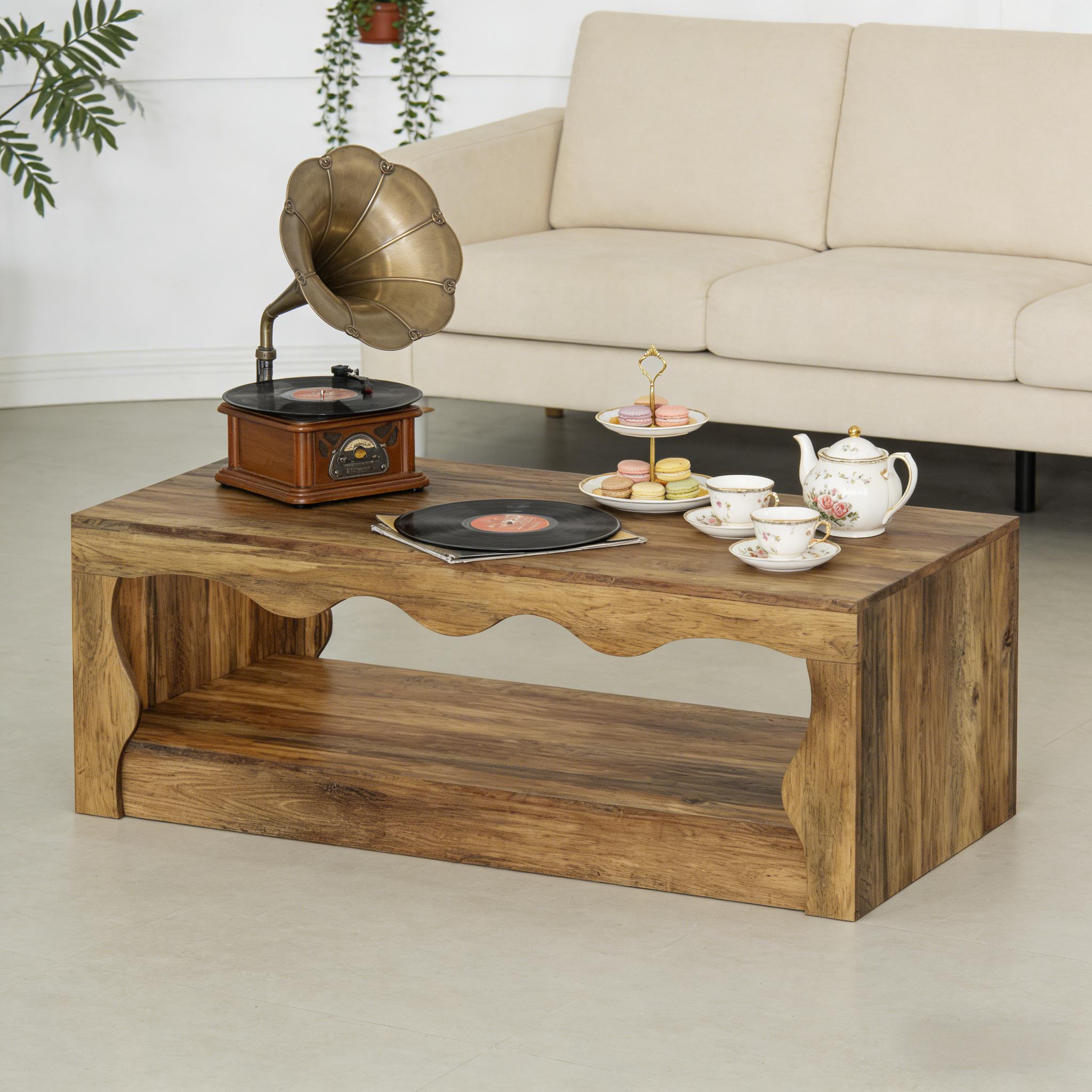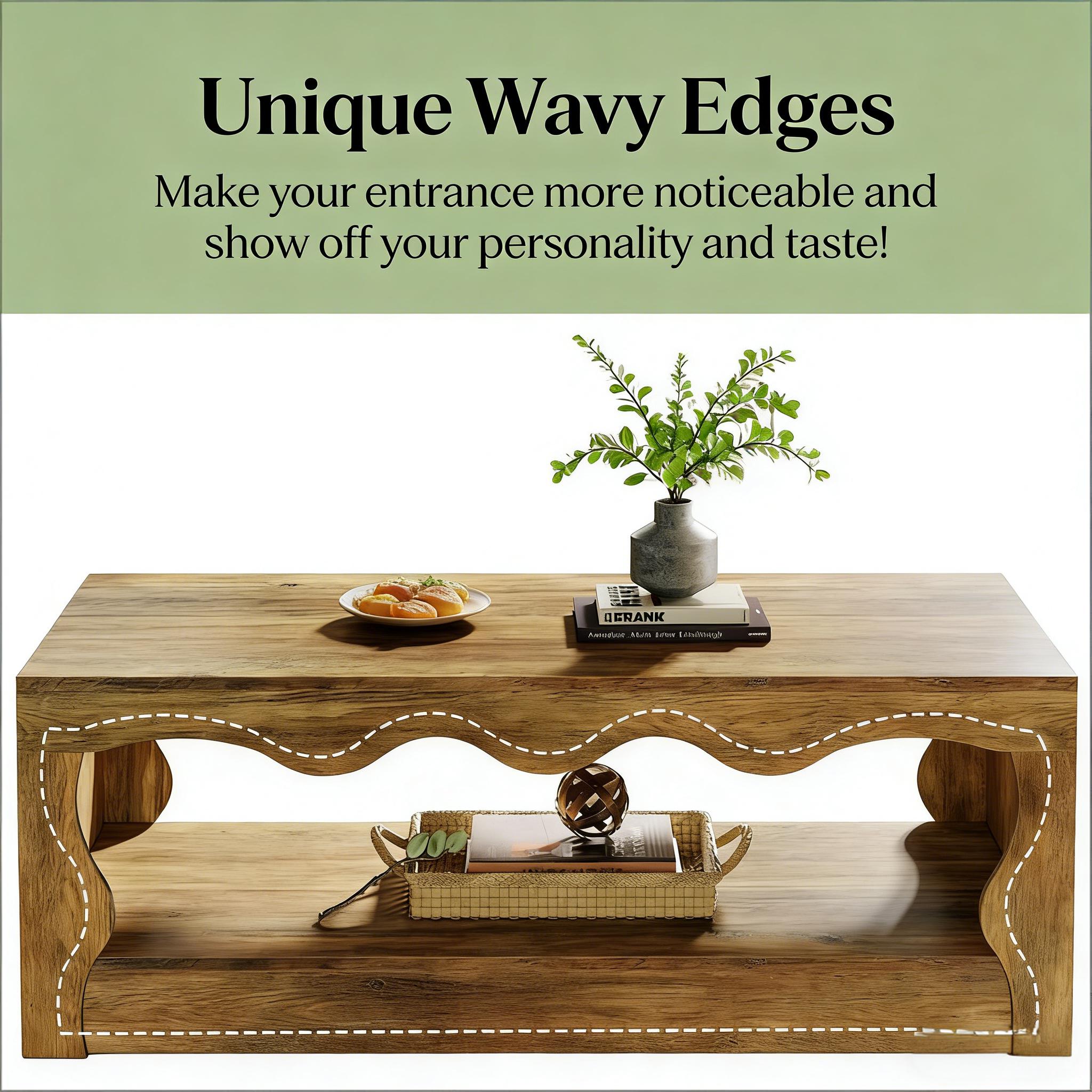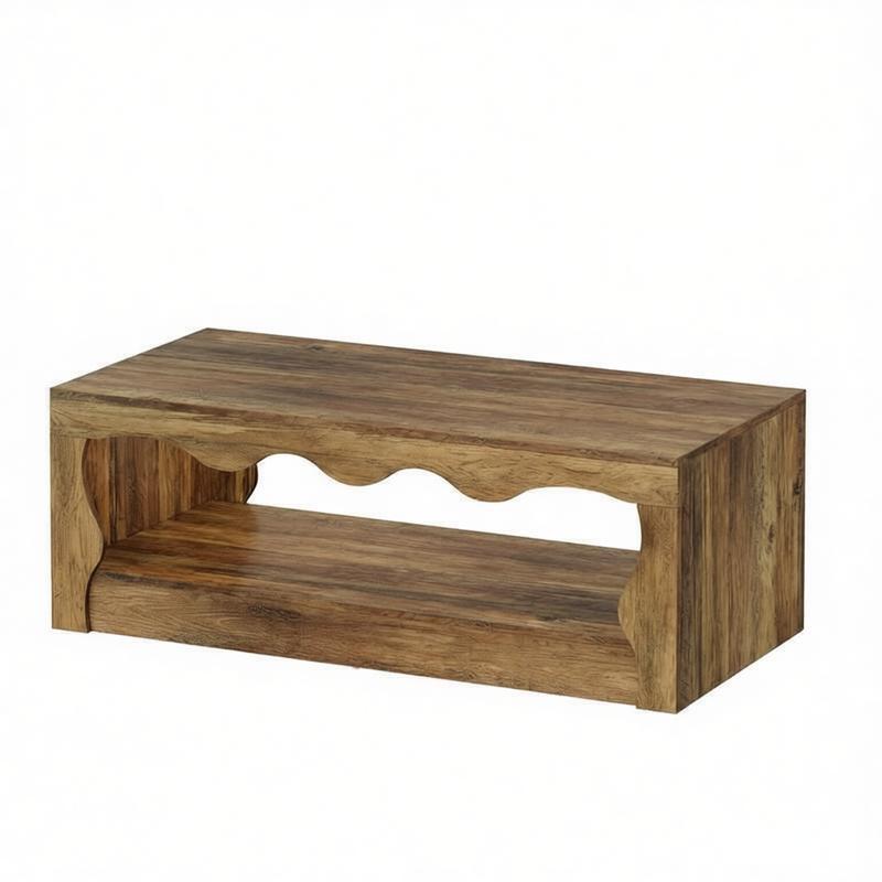 Important Reminder!!! 1) Attention: All products in our store do not support Canada self pickup ordering. Please do not create shipping labels for Canada. Our American products do not support self pickup to Canada 2)We do not ship to Alaska, Hawaii, US protectorates (e.g., Puerto Rico), P.O. boxes, or APO/FPO addresse 3)We don’t accept non-defective remorse returns Farmhouse Charm – Sleek coffee table with natural wood grain finish and unique wave-patterned edges. Timeless design complements any living space. Generous Size – 47.24-inch length provides plenty of room for decor, drinks, and snacks. Features handy under-table storage. Multi-Purpose Use – Works as a coffee table, side table, or display piece in living rooms, bedrooms, offices, or event spaces. Solid Construction – Made from high-quality P2 MDF with a thick 2.17-inch top. Strong dual-layer design holds up to 350 lbs. Simple Assembly – Includes easy instructions and all necessary hardware. Customer support ready to help if needed.