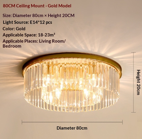 Light Color: [Clear Crystal] Gold φ400 Two-Layer Crystal [Dual-Use for Ceiling or Pendant Lighting]; [Clear Crystal] Gold φ600 Two-Layer Crystal [Dual-Use for Ceiling or Pendant Lighting]; [Clear Crystal] Gold φ800 Two-Layer Crystal [Dual-Use for Ceiling or Pendant Lighting]; [Clear Crystal] Gold φ1000 Three-Layer Crystal [Dual-Use for Ceiling or Pendant Lighting]