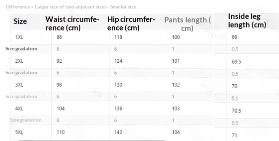 Sizes: 1XL, 2XL, 3XL, 4XL, 5XL