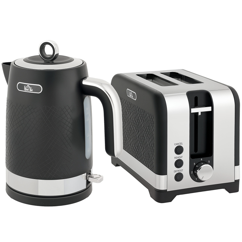 Super sleek, with a touch of texture: welcome this kettle and toaster set onto countertops. Both pieces blend a curved shape, with polished metal accents and in a matte colour finish with a touch of texture - a distinctive set for your kitchen. Fitted with an Otter thermostat, the 1.7L kettle boils water within minutes, so everyone can enjoy a hot drink quickly. The wide slot two-slice toaster has seven browning levels to enjoy just how you like it.