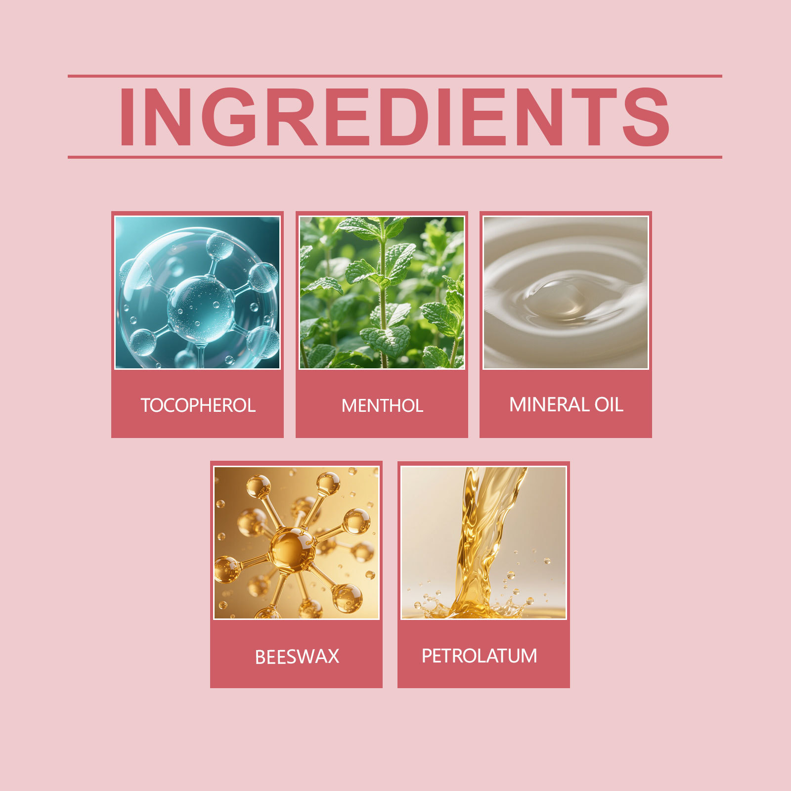 Active ingredients: Menthol, Tocopherol (Vitamin E)