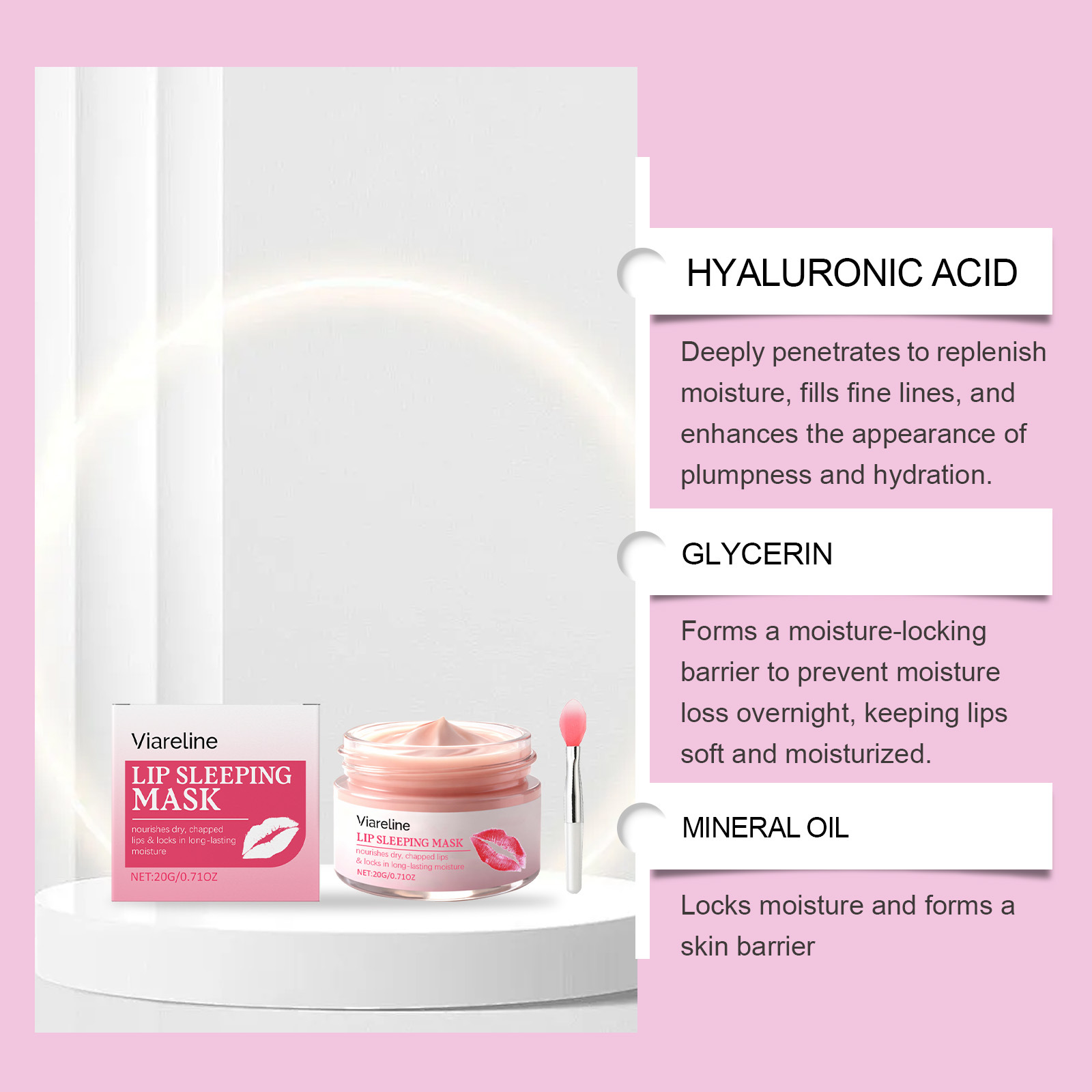 Ingredients: water, mineral oil, glycerin, glycerol stearate, 1,2- hexanediol, carbomer, arginine, allantoin, hyaluronic acid.
