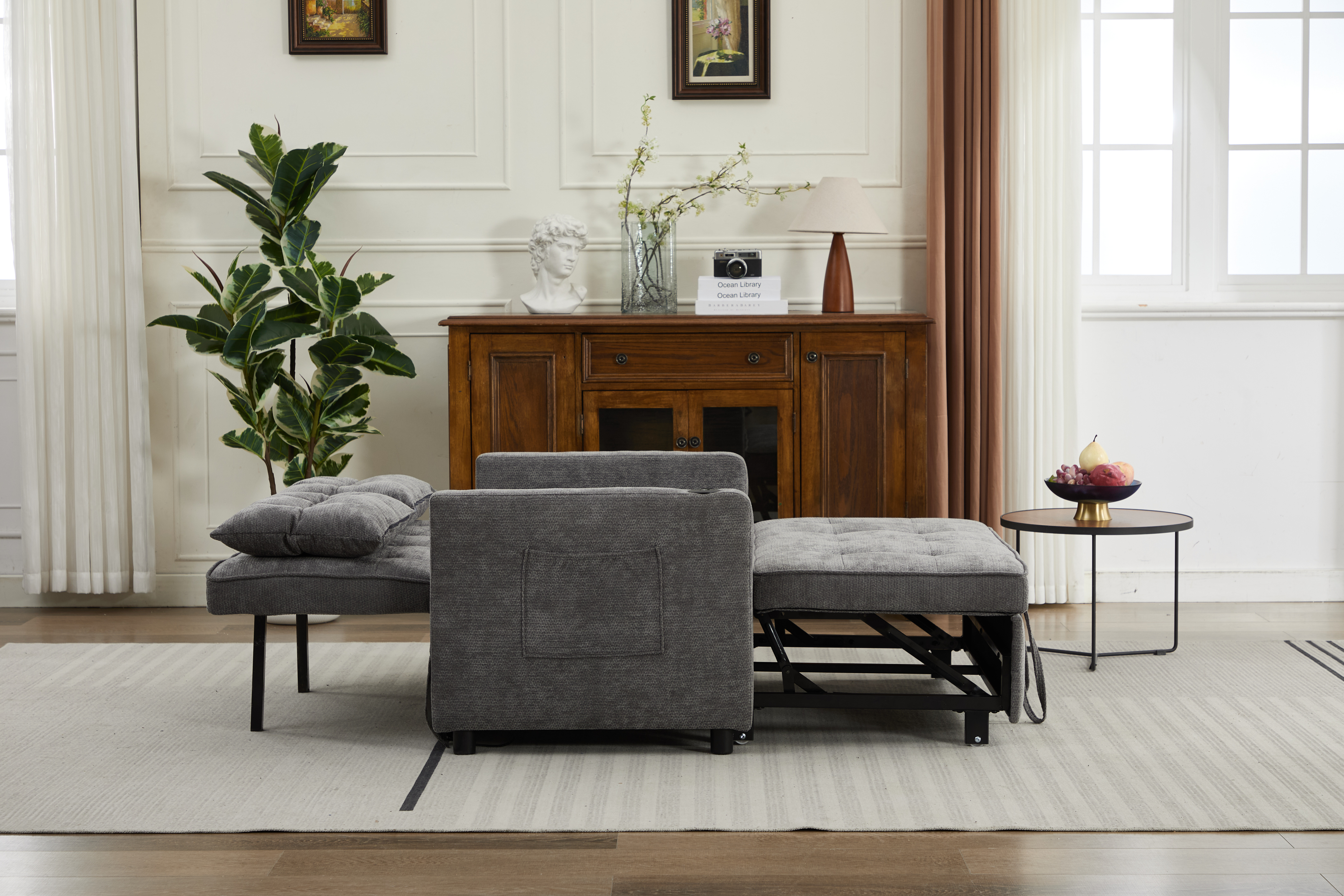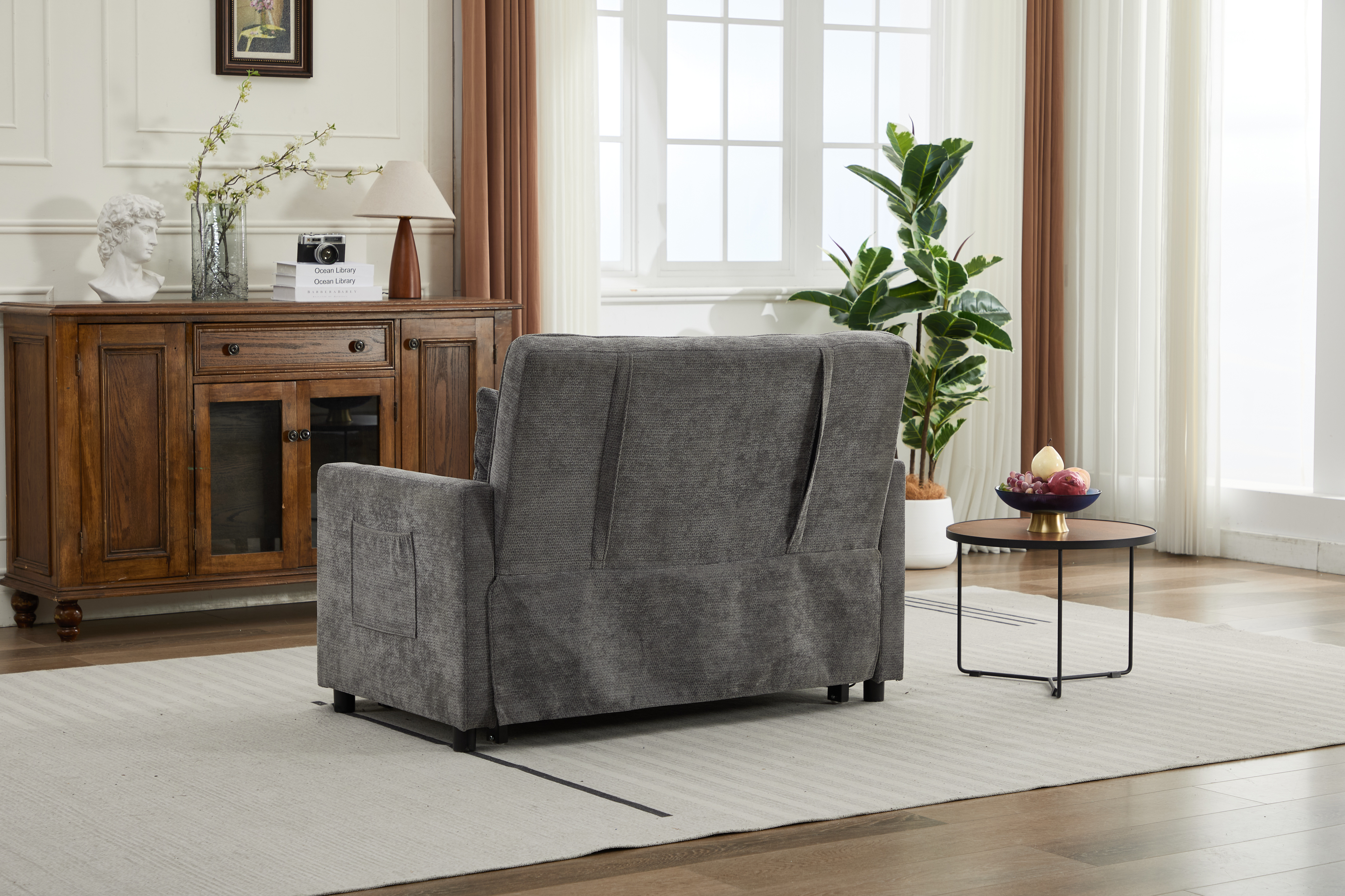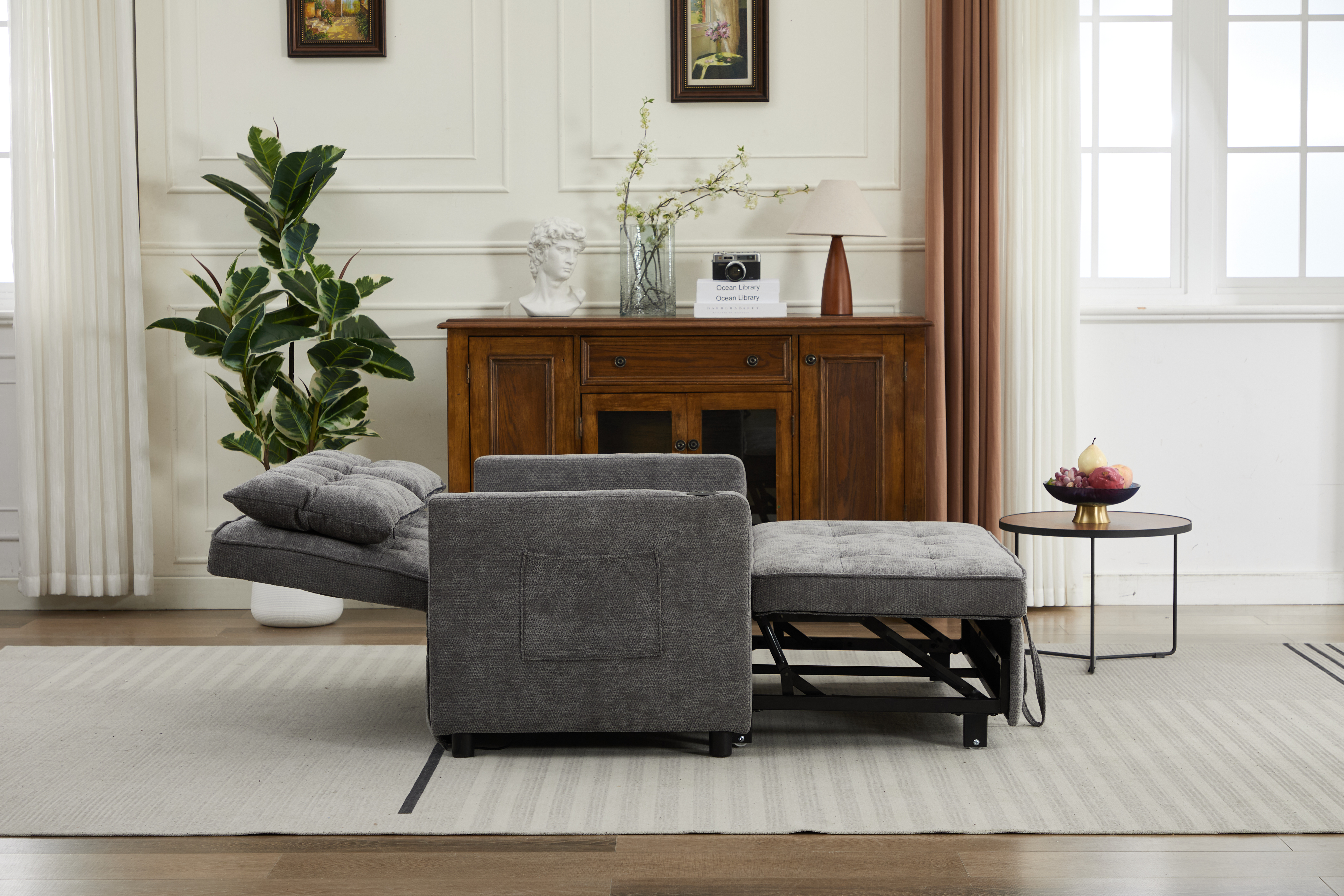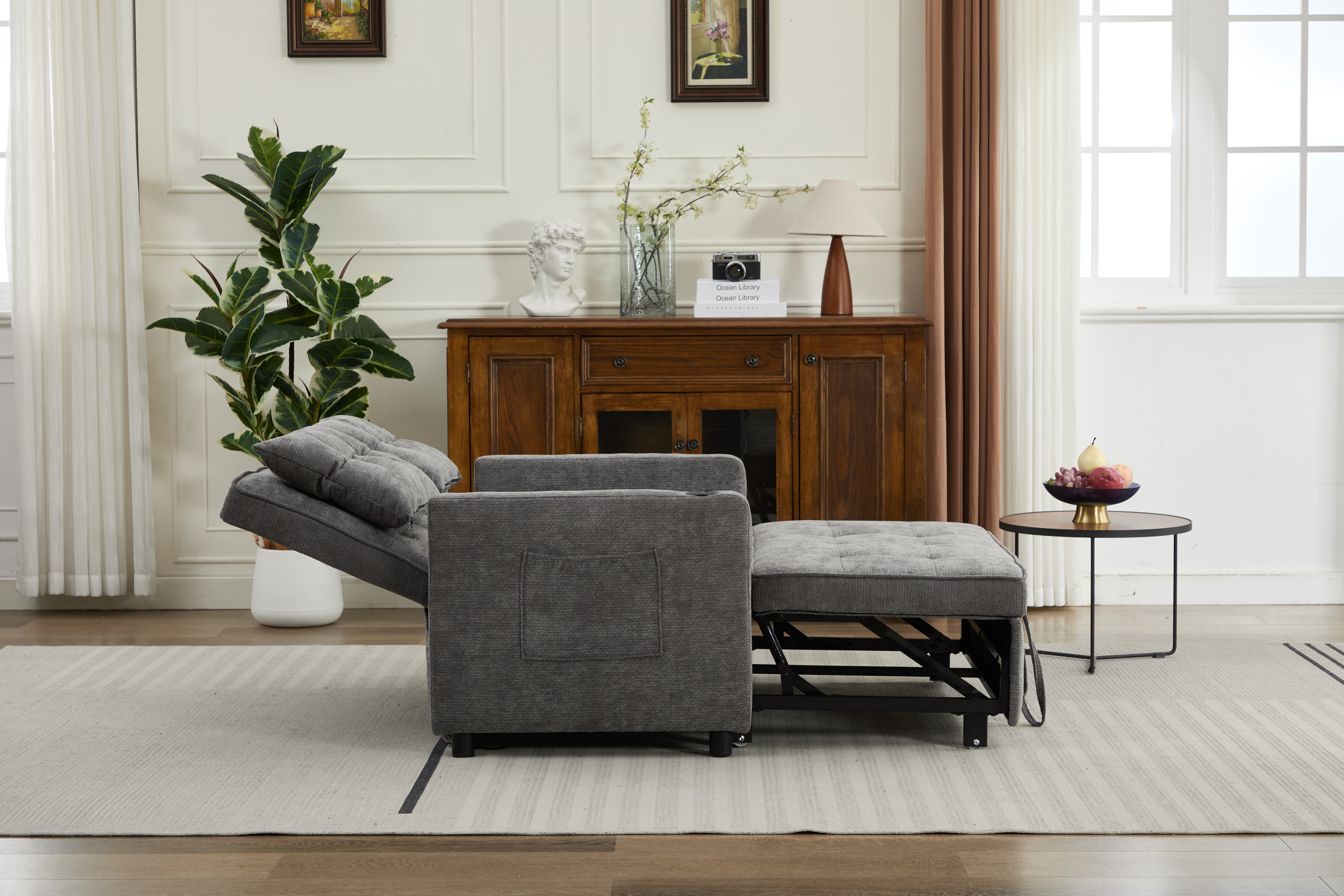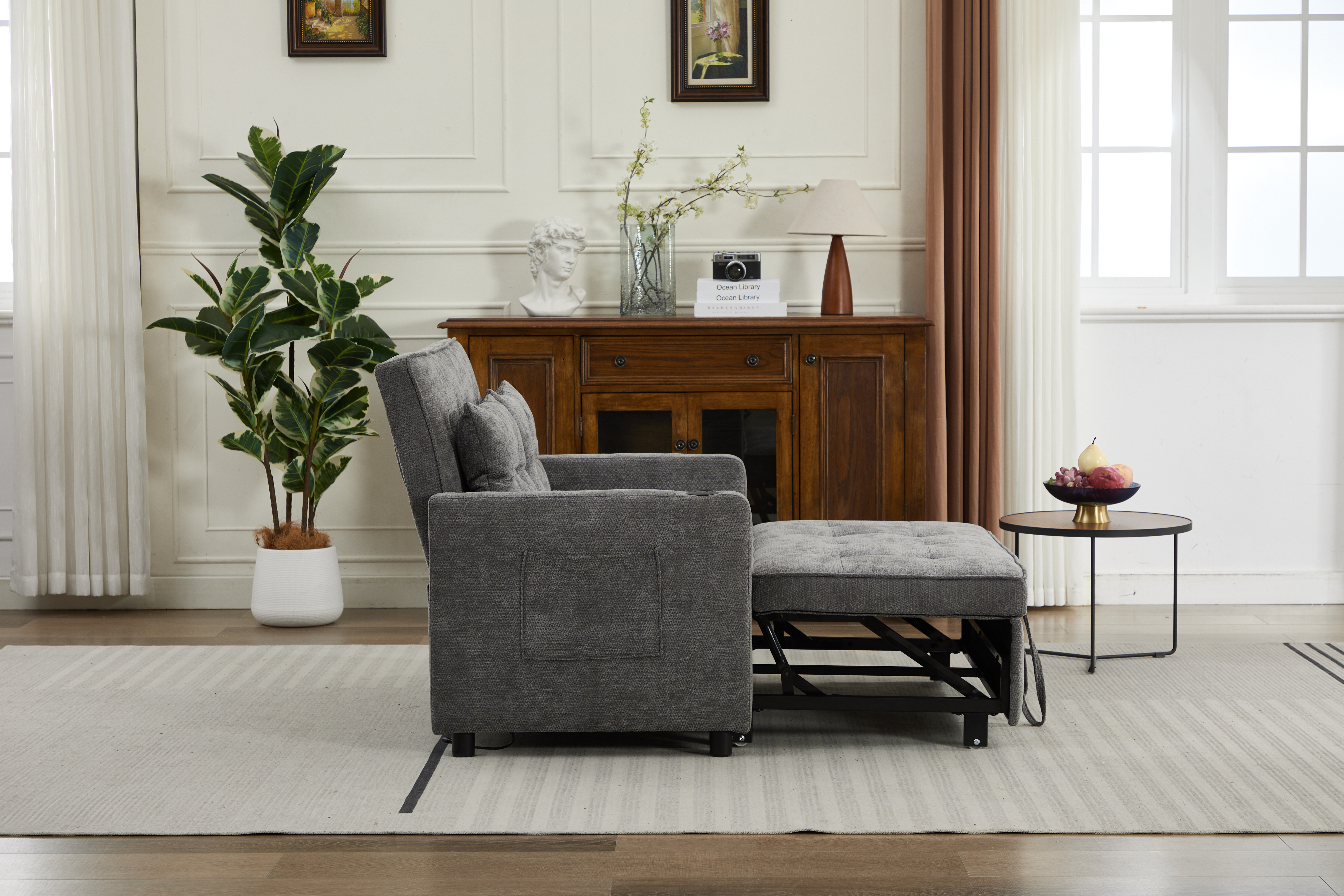 Product Name:Sleeper Chair 3-in-1 Convertible Chair Bed Pull Out Sleeper Chair Beds Adjustable Double Armchair Sofa Bed with USB Ports, Side Pocket, Linen grey