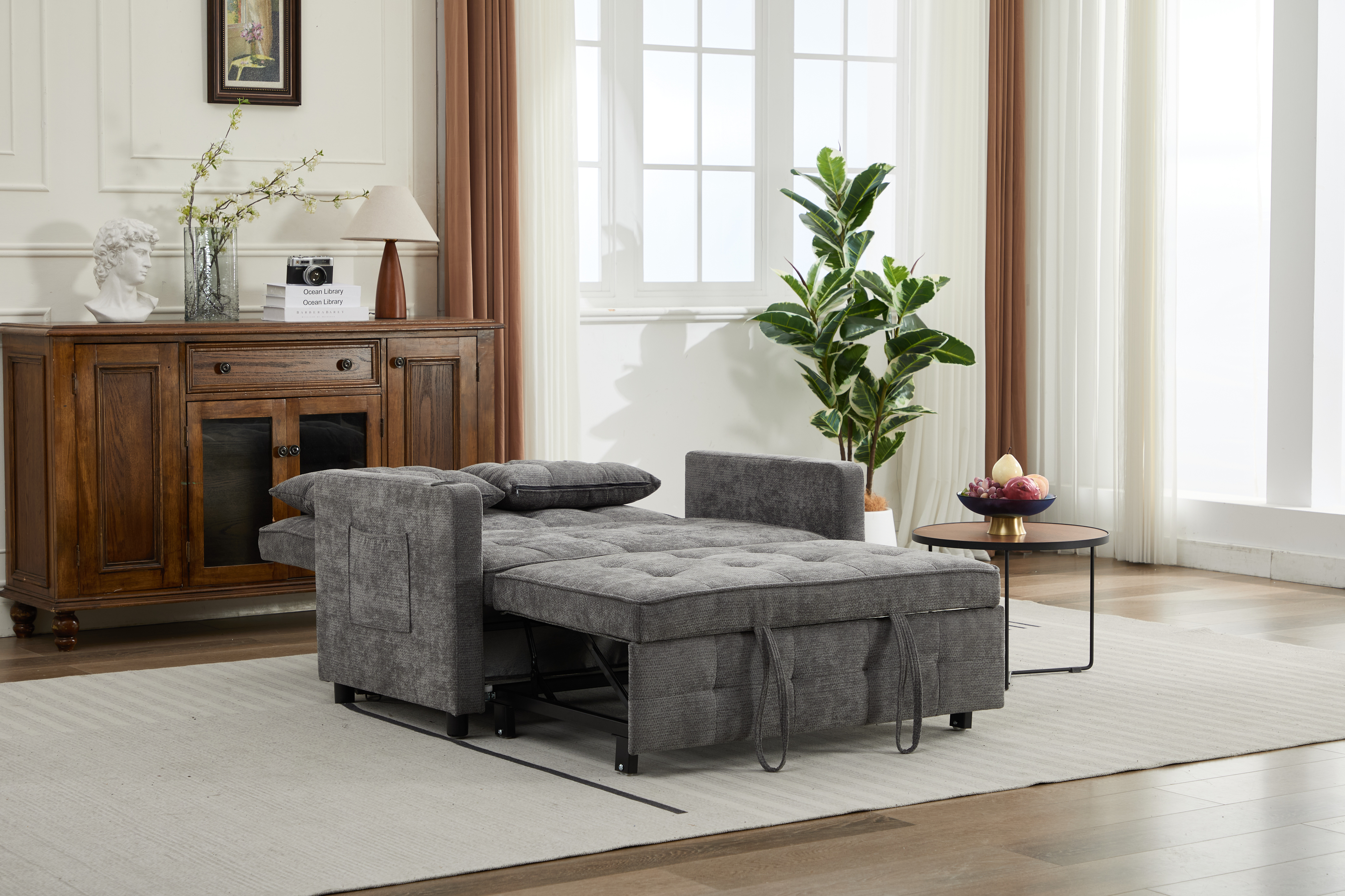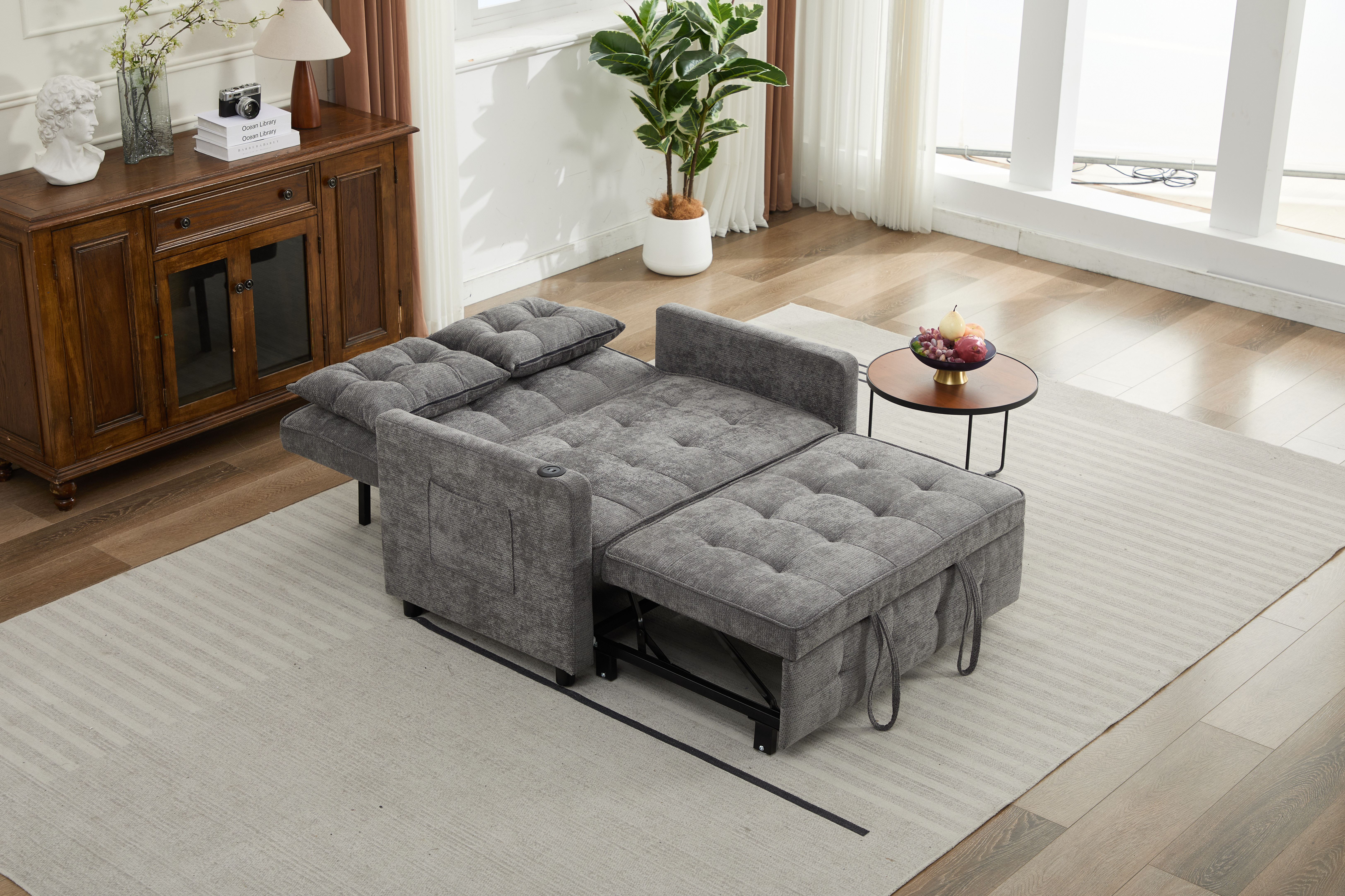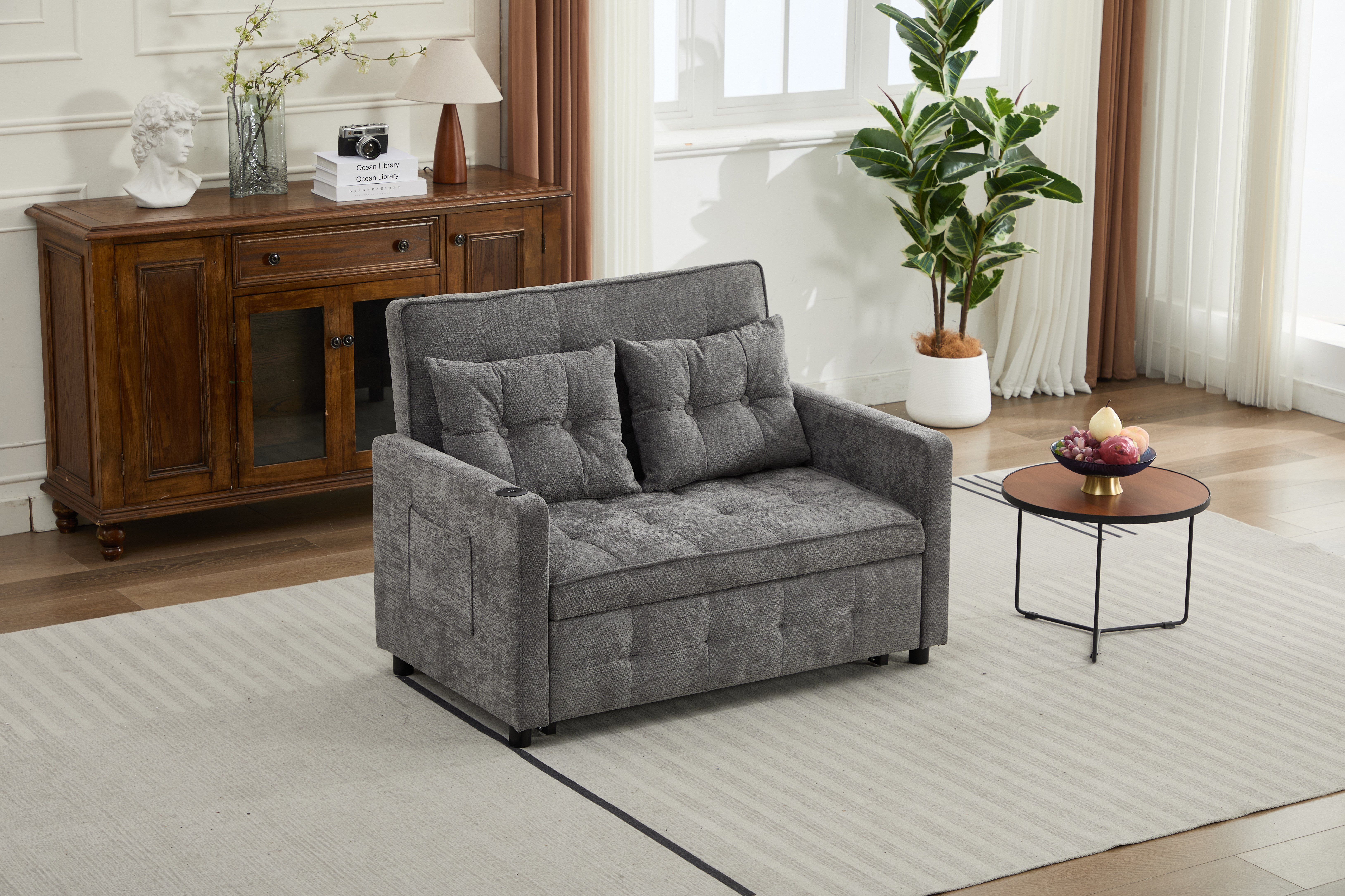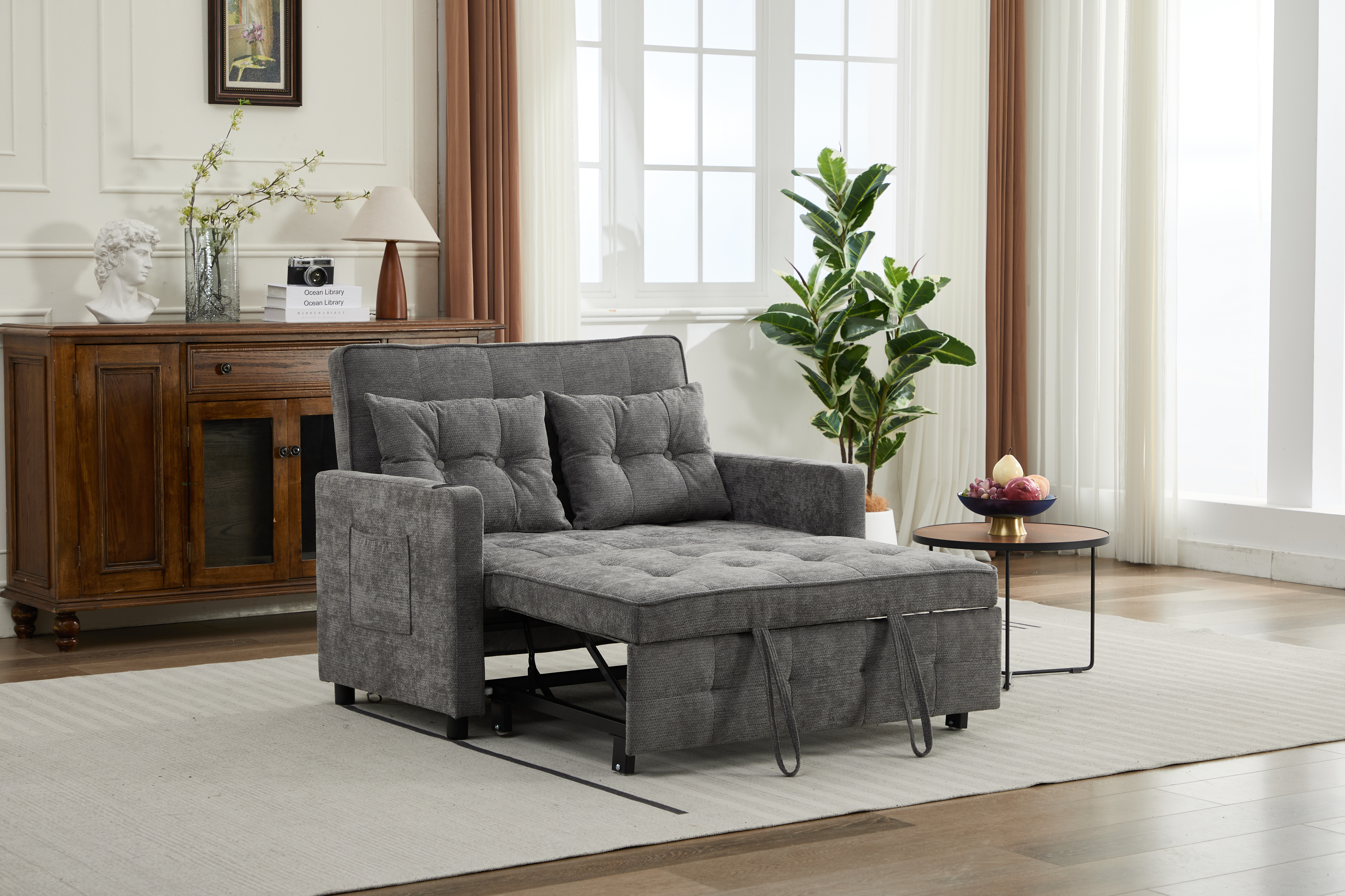Product Name:Sleeper Chair 3-in-1 Convertible Chair Bed Pull Out Sleeper Chair Beds Adjustable Double Armchair Sofa Bed with USB Ports, Side Pocket, Linen grey