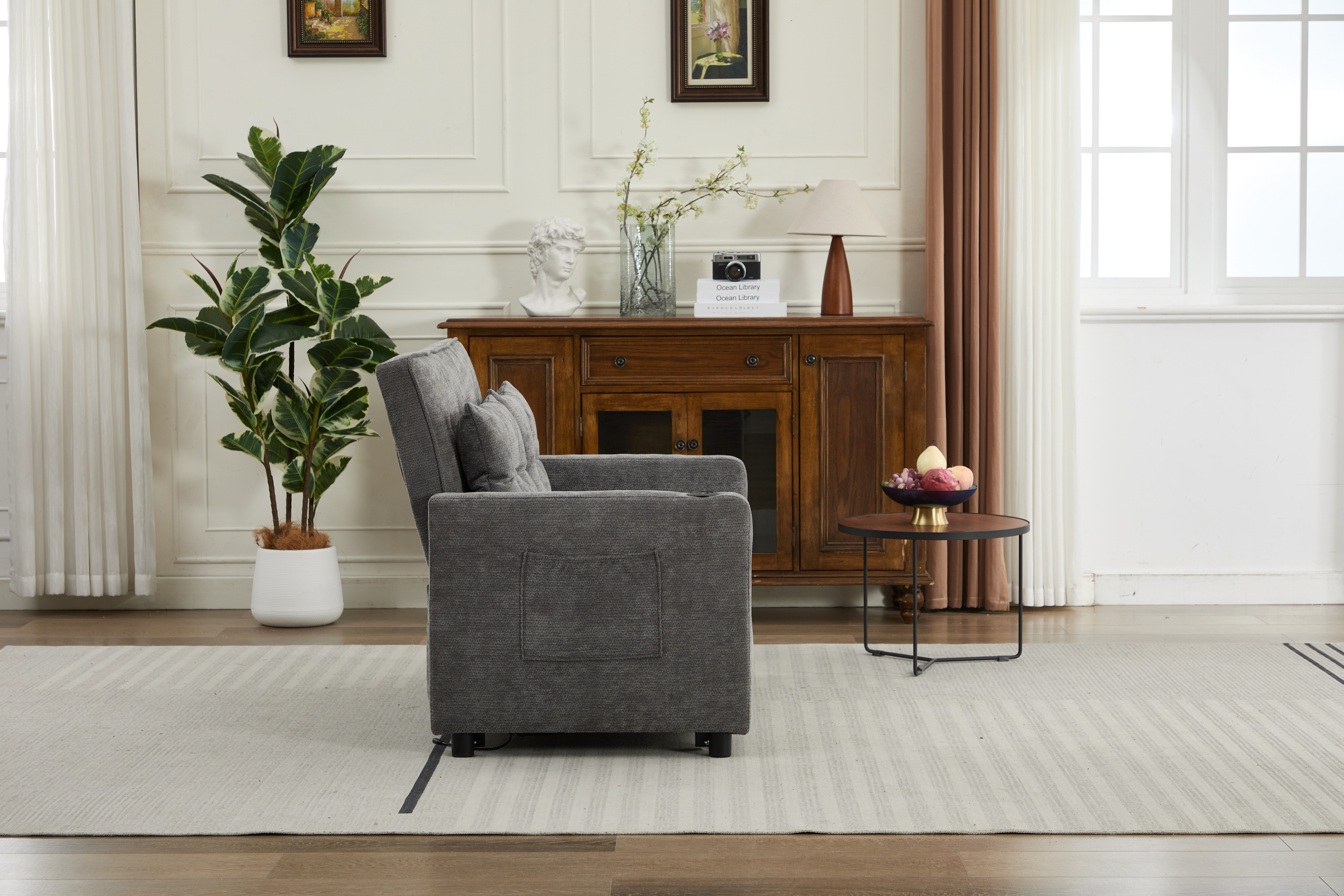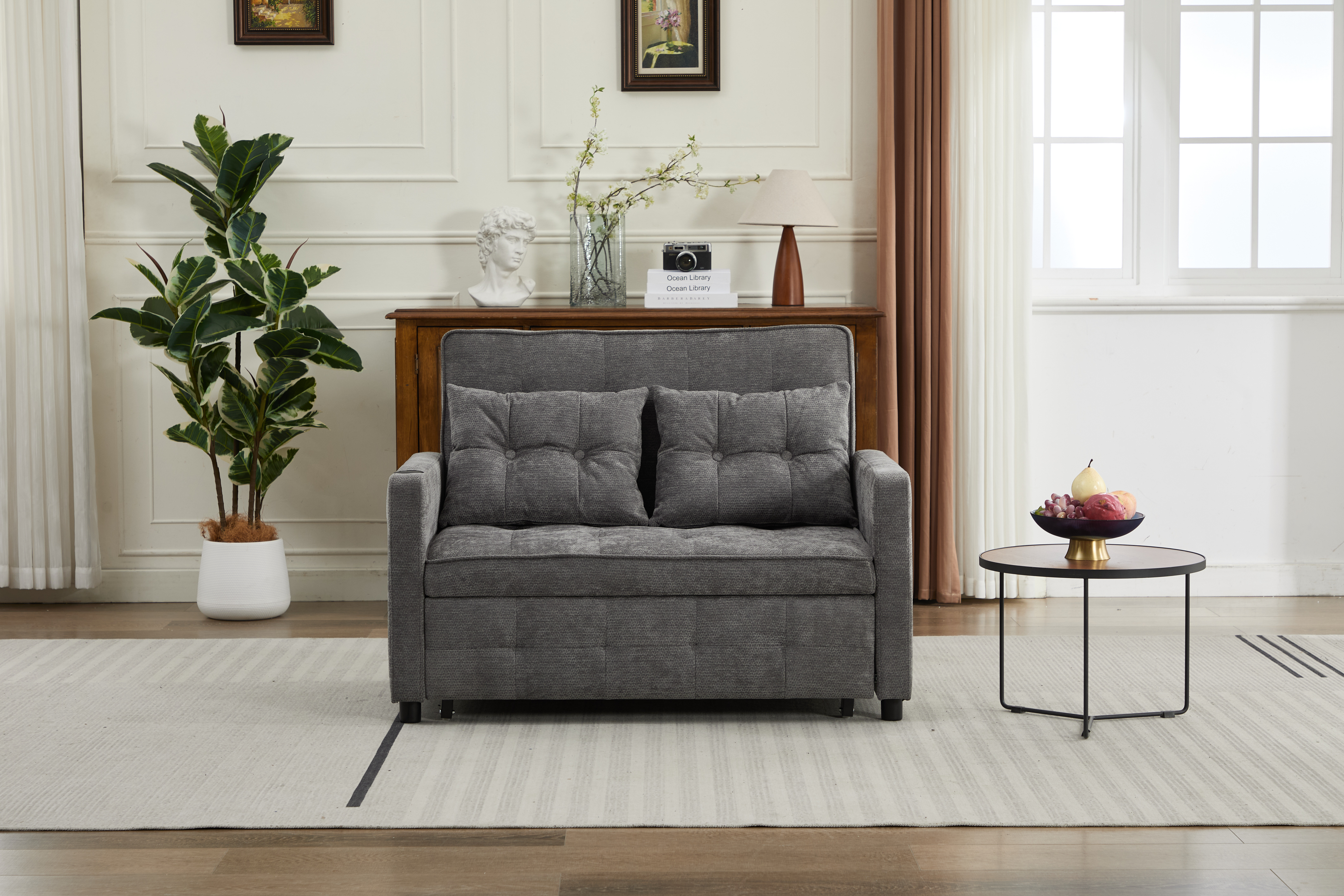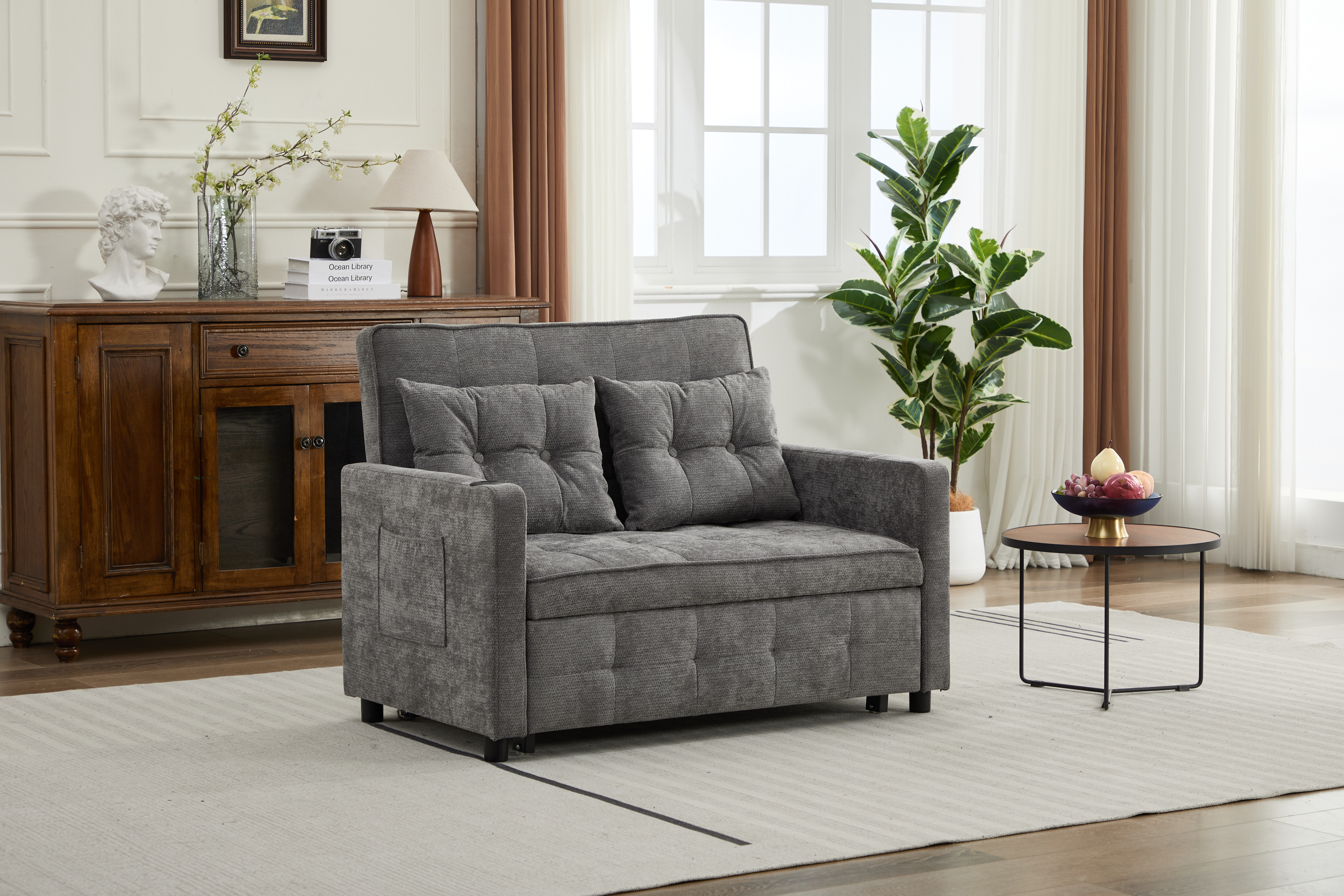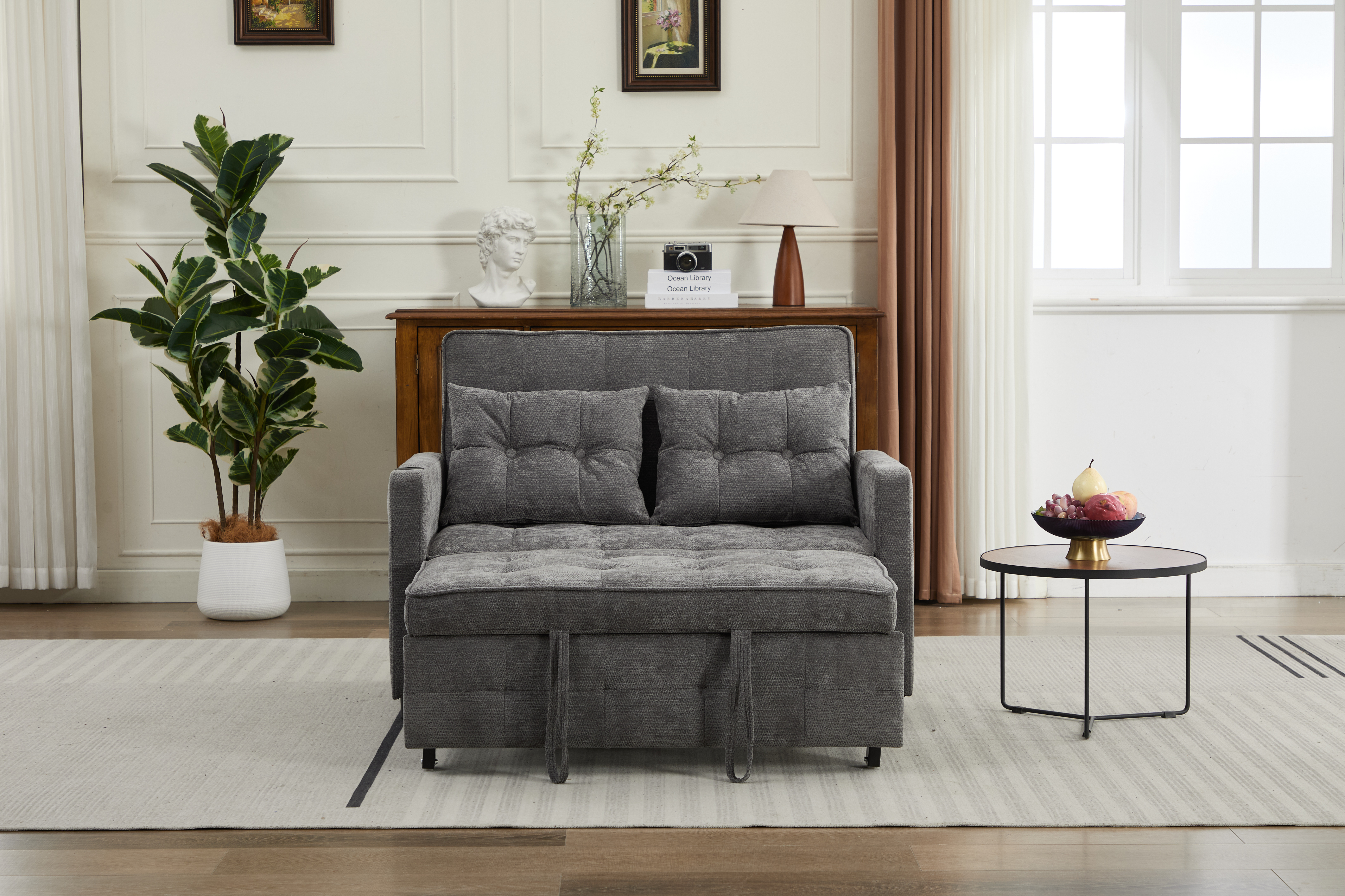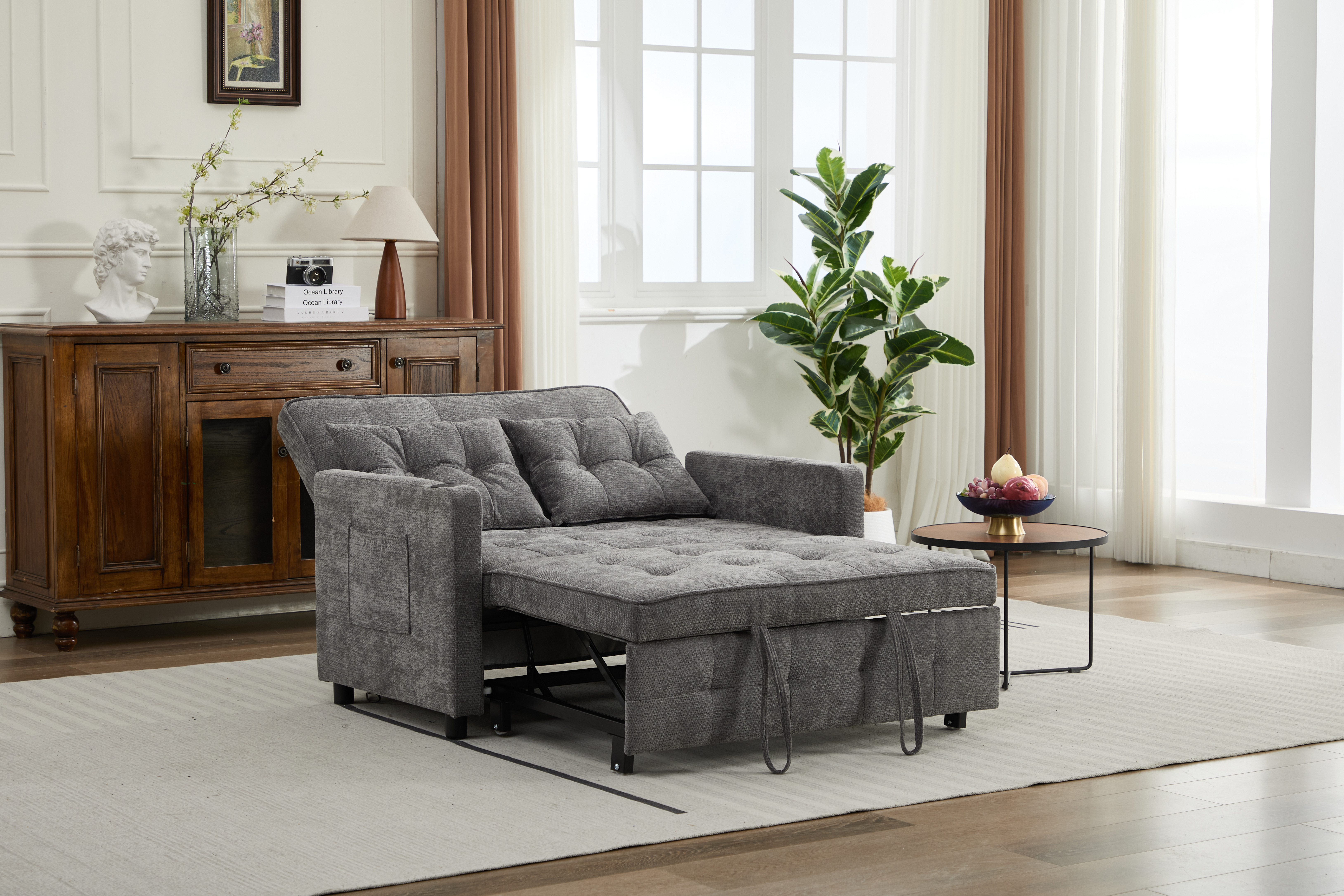 Product Name:Sleeper Chair 3-in-1 Convertible Chair Bed Pull Out Sleeper Chair Beds Adjustable Double Armchair Sofa Bed with USB Ports, Side Pocket, Linen grey