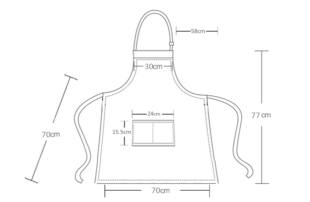 The whole length of the apron does not include about 77CM shoulder strap (manual measurement, error is normal, please forgive me)