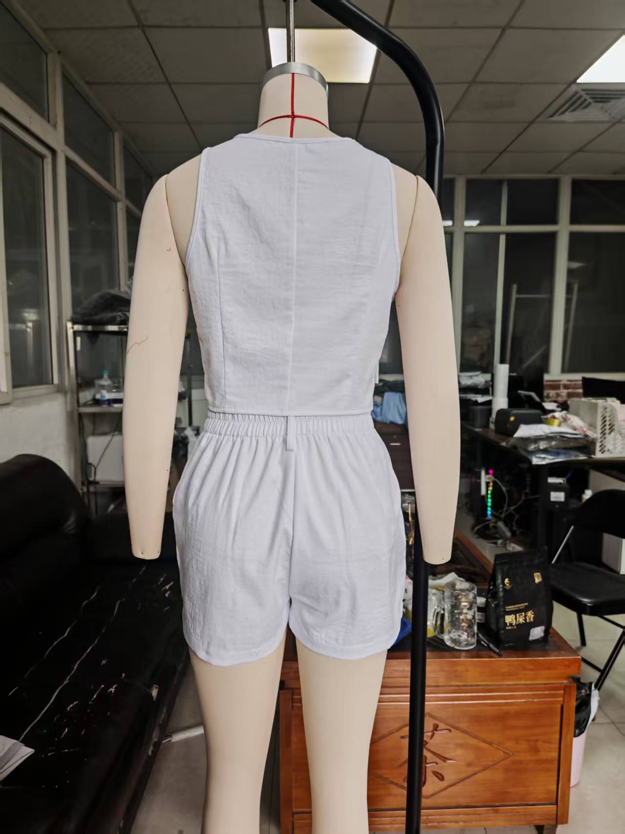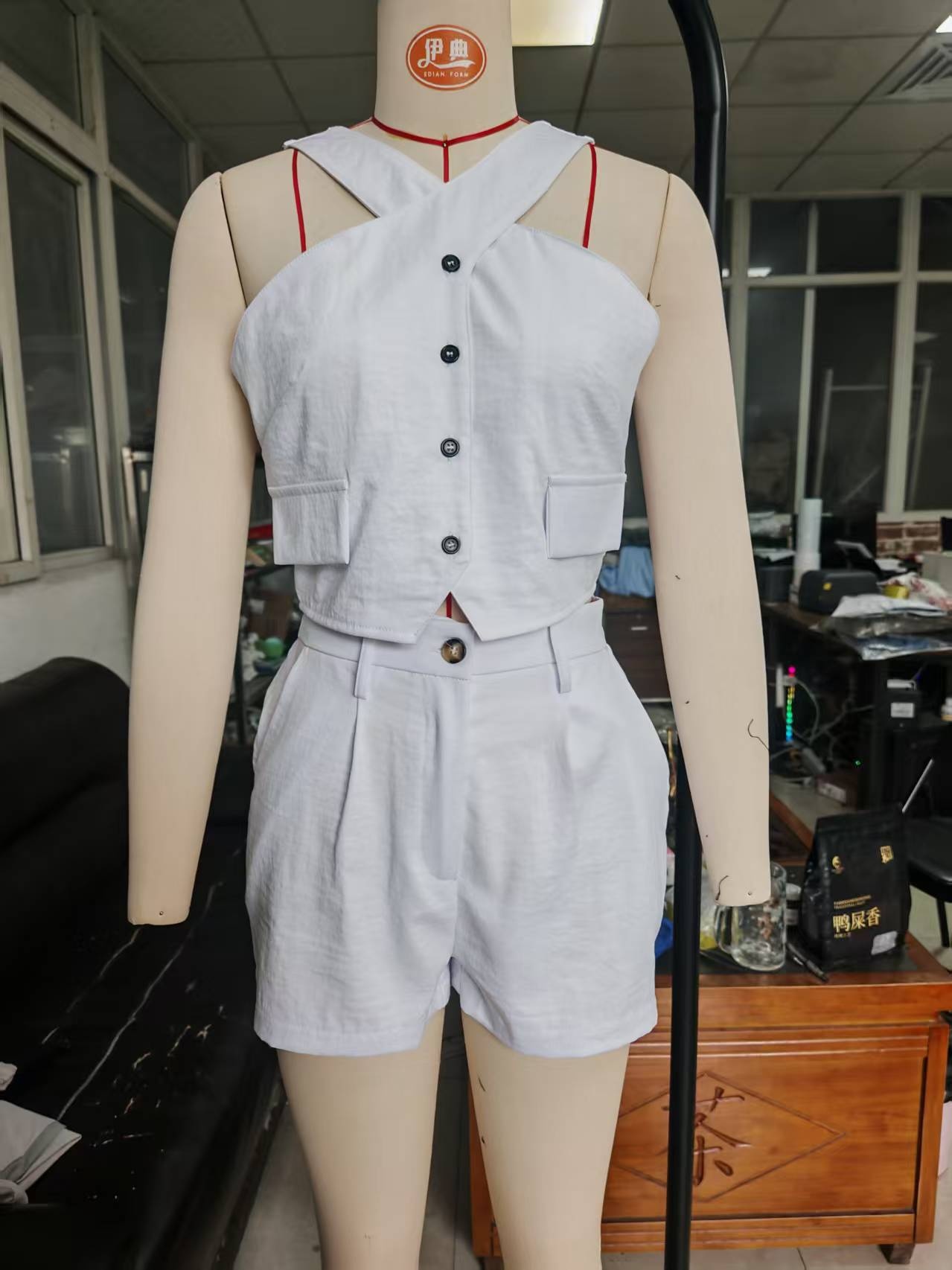 Sleeveless Halter-neck Casual Top Paired With Fashionable Shorts Set