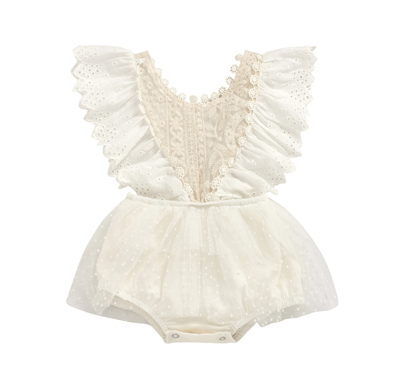 Sleeveless lace baby creeper