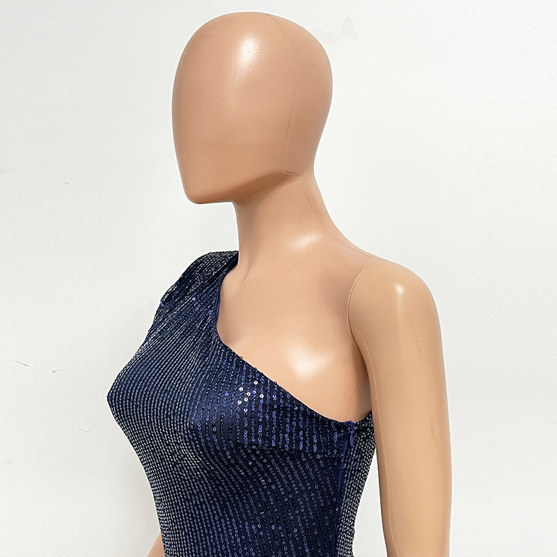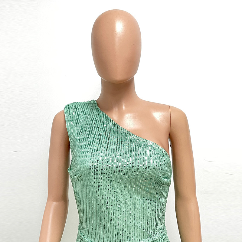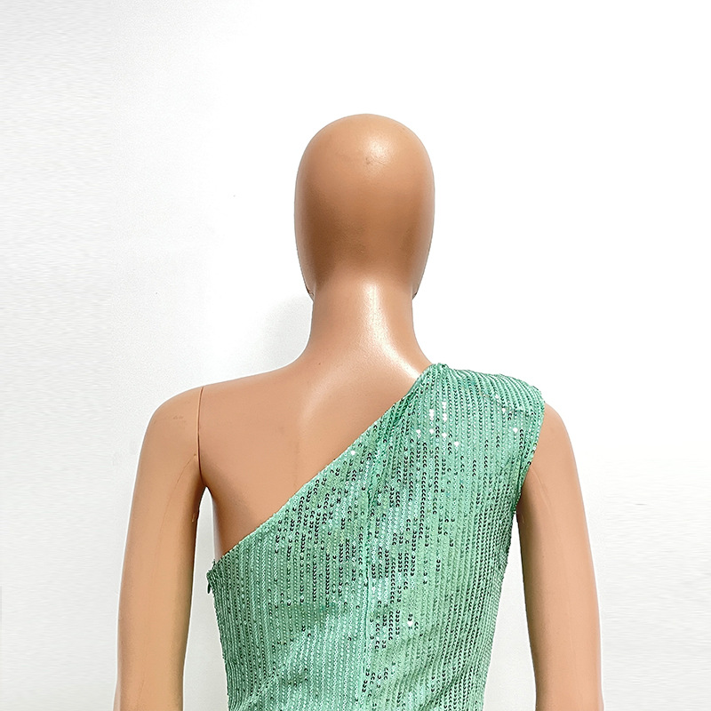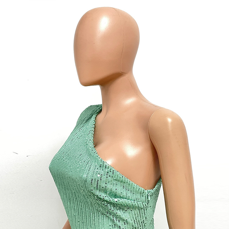 Popular elements: sequined sequins top of pipe sleeveless zipper backless