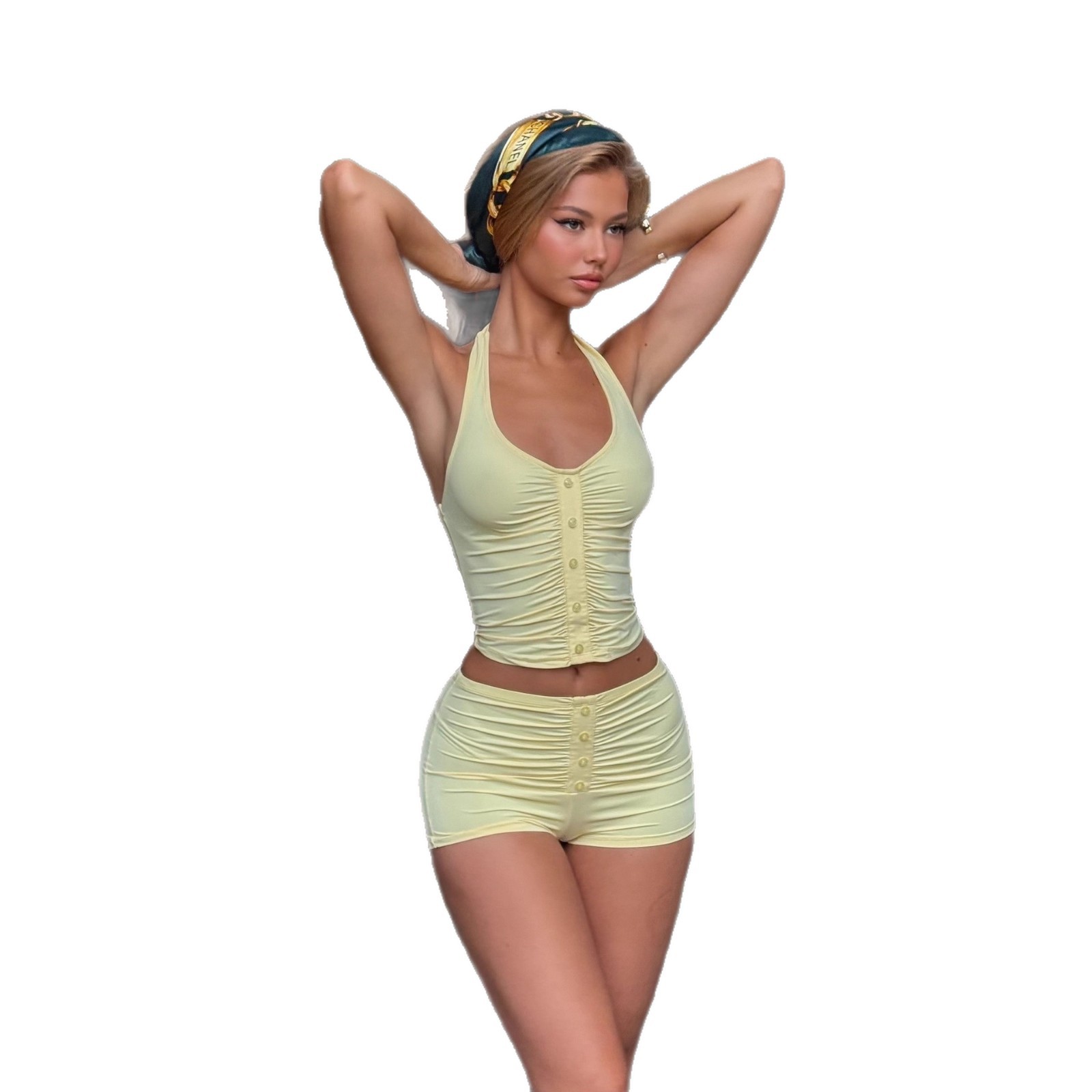 Sleeveless Pleated Halter Vest Shorts Set Summer