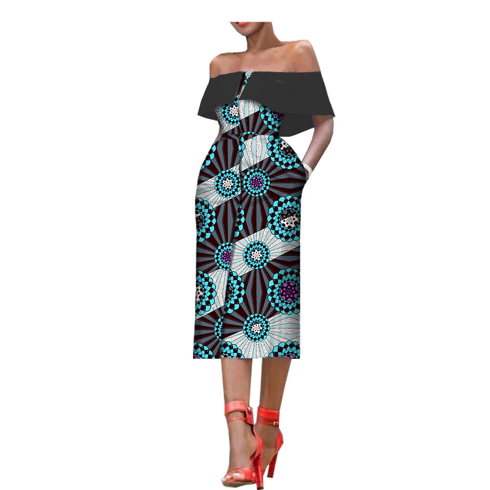 Sleeveless Printed One-Chest Off-Shoulder Gown