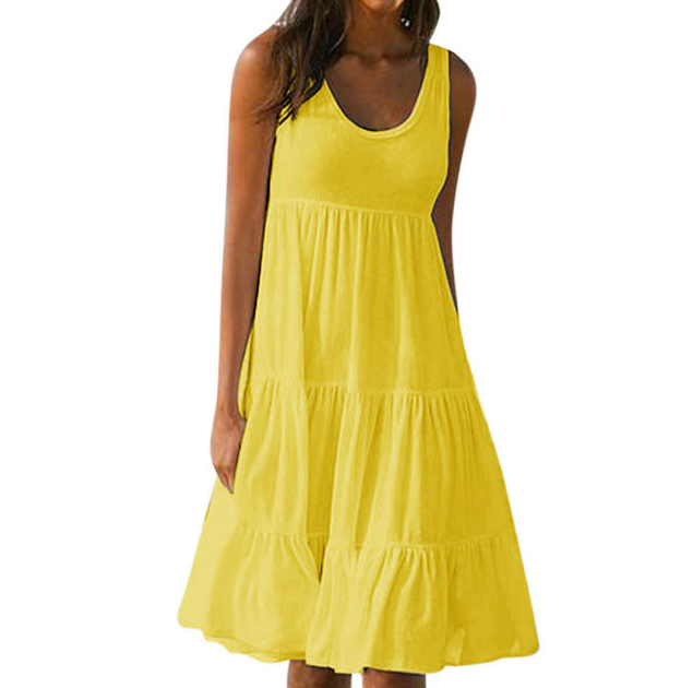 Sleeveless round neck splicing large beach skirt