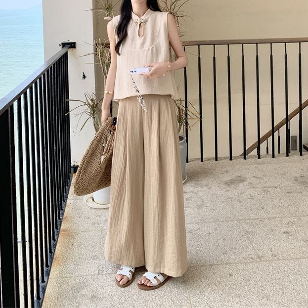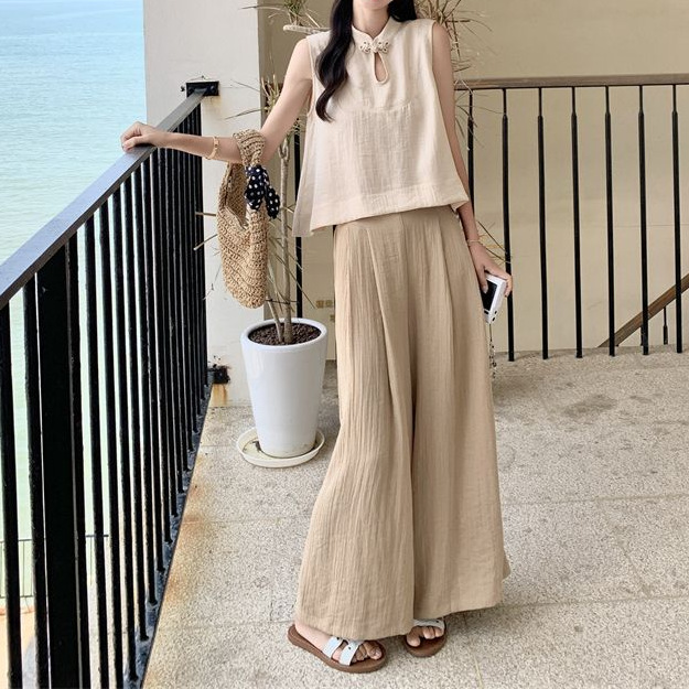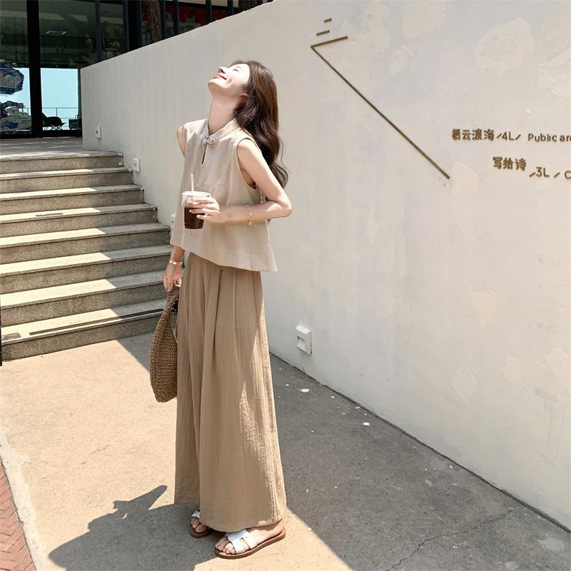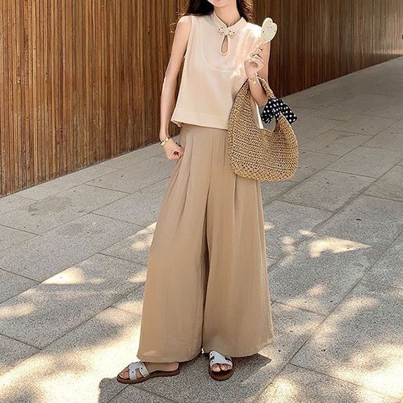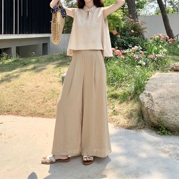 Color: Apricot top, khaki pants, apricot top + khaki pants