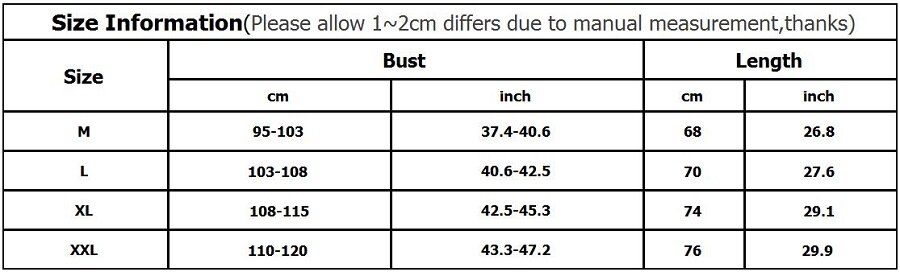 1. Asian sizes are 1 to 2 sizes smaller than European and American people. Choose the larger size if your size between two sizes. Please allow 2-3cm differences due to manual measurement.