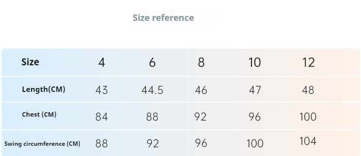 Size: 4,6,8,10,12