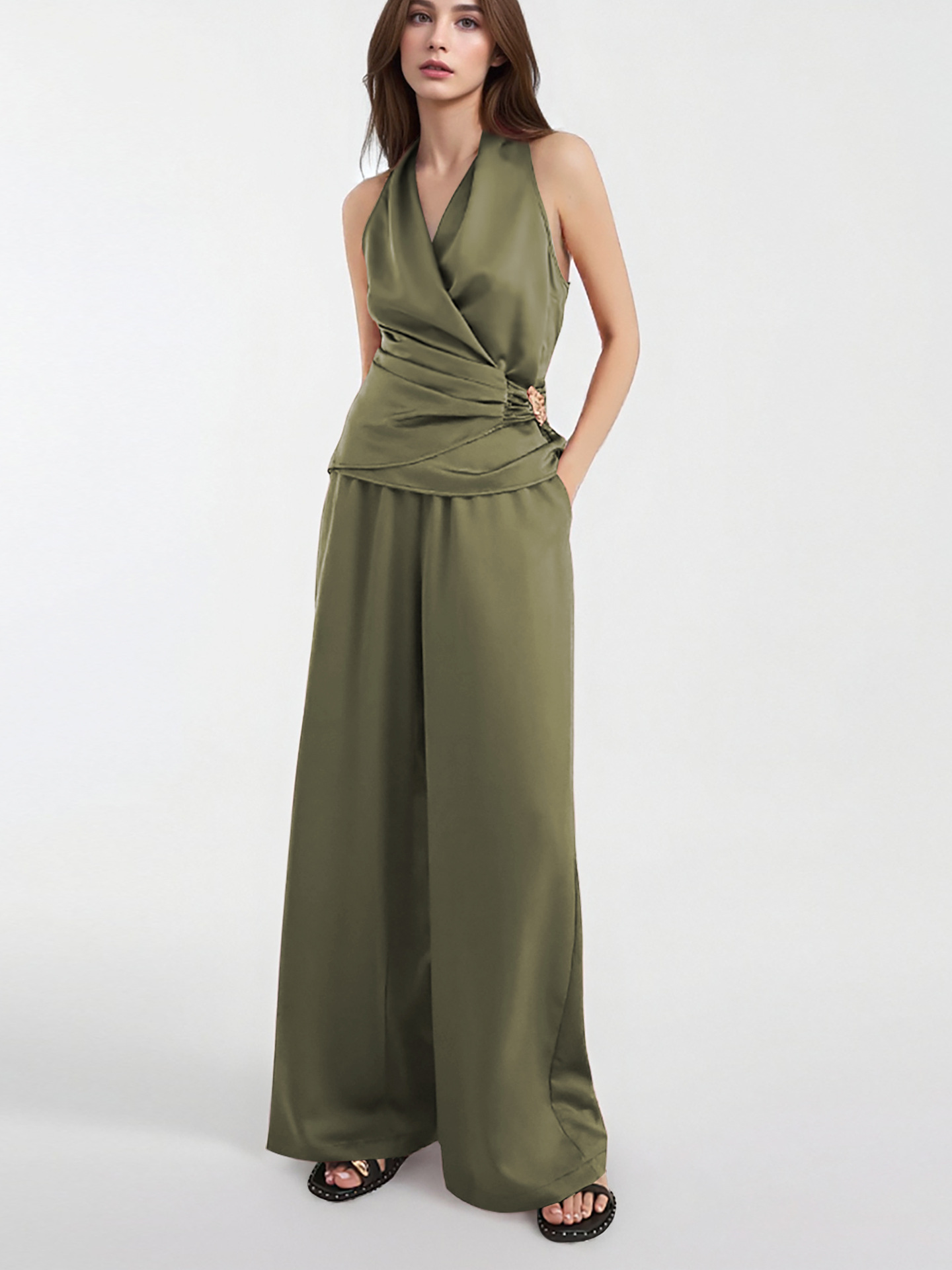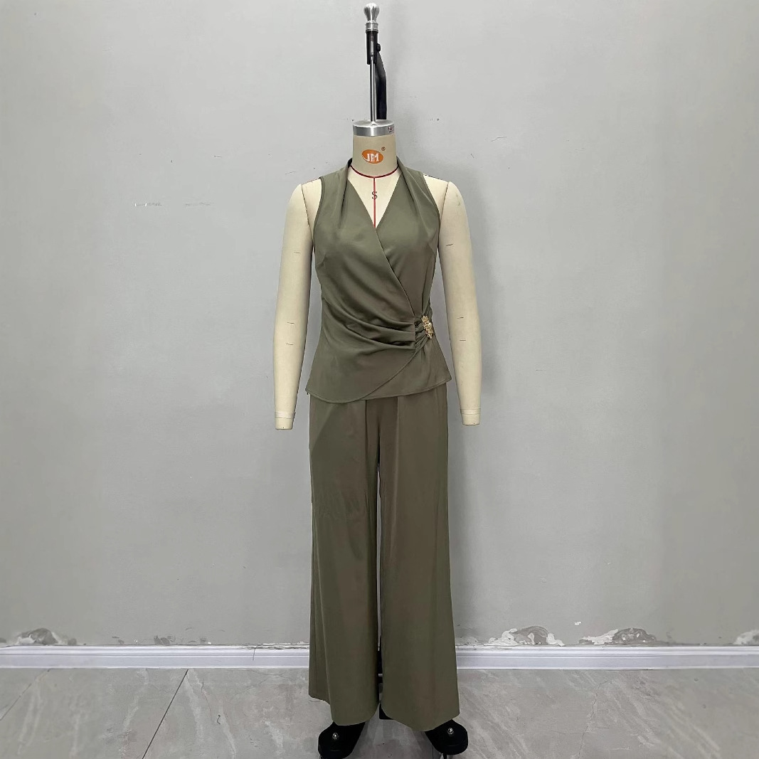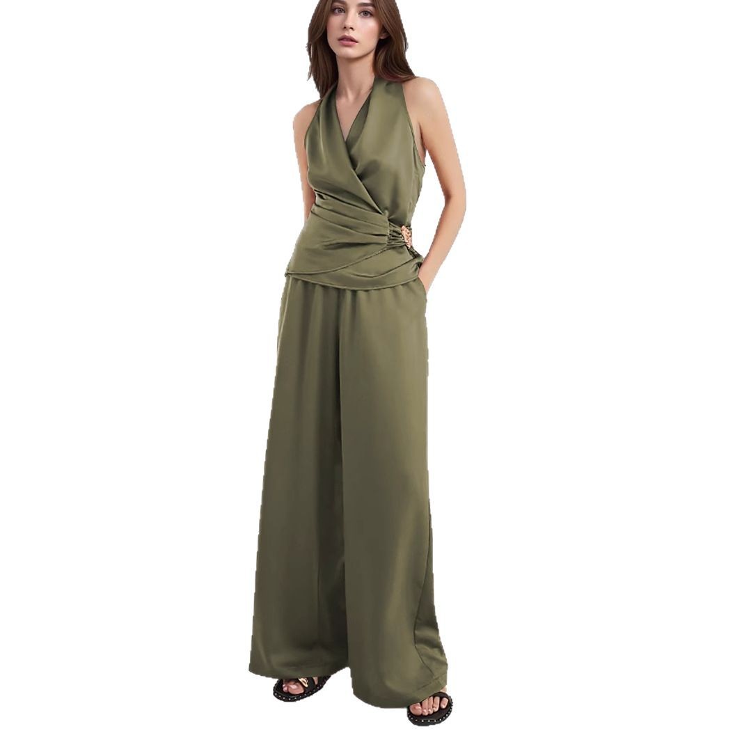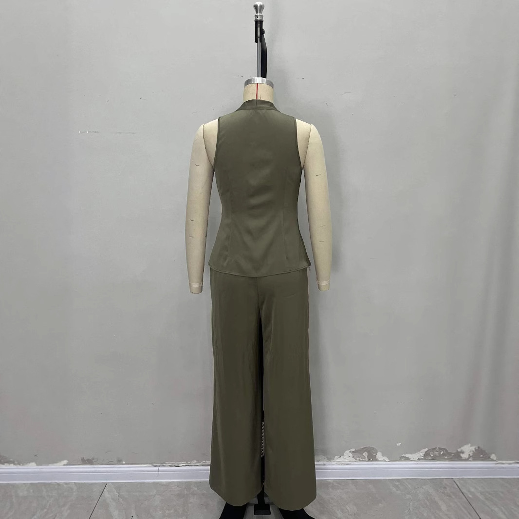 Sleeveless Vest High-waisted Wide-leg Pants Set