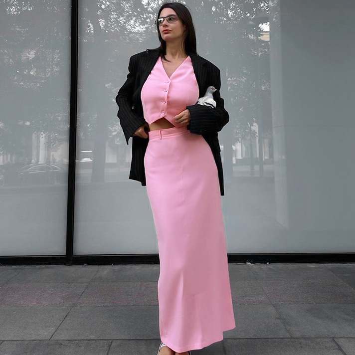 Sleeveless Vest Split Skirt Suit For Women