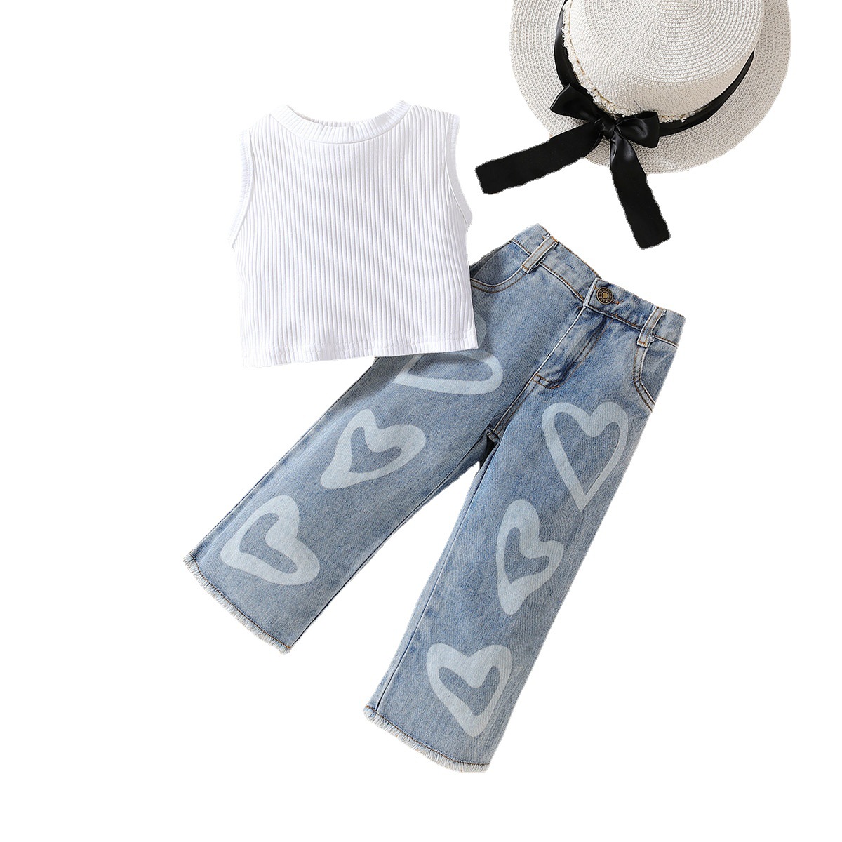 Sleeveless Vest Top Love Wide-leg Jeans