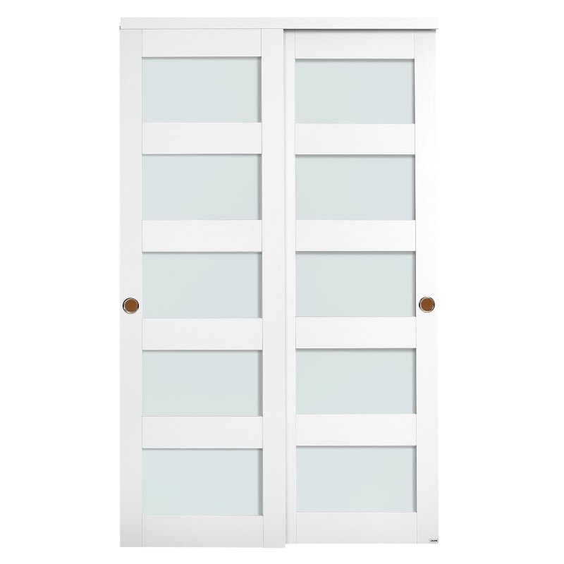 Easy to Install: Includes 2 sliding doors and a complete installation hardware kit. Simply install the door slab, assemble the glass panels, install the hardware kits, and then hang the doors. In no time, you'll have a functional and stylish sliding door system