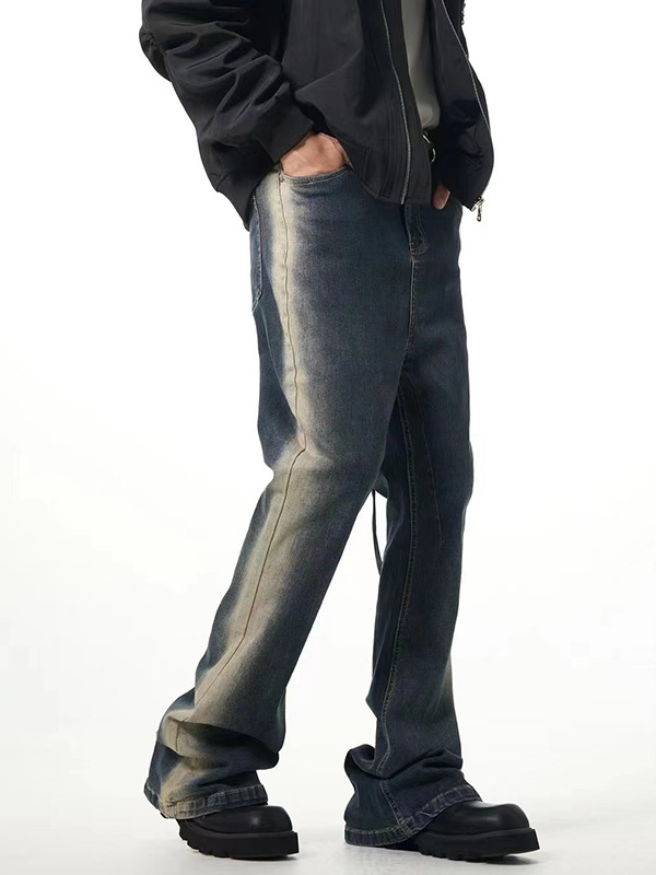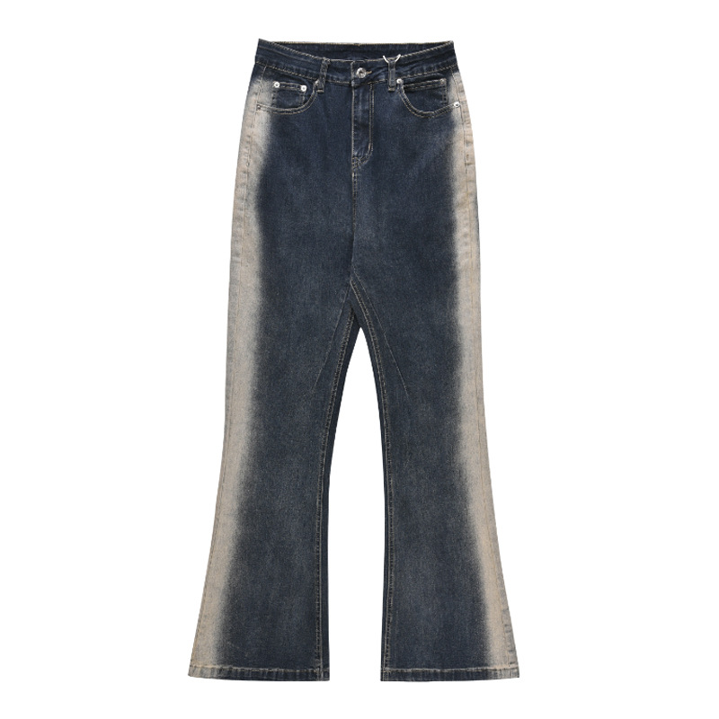 Slightly Flared Side Washing And Mopping Gradient Jeans