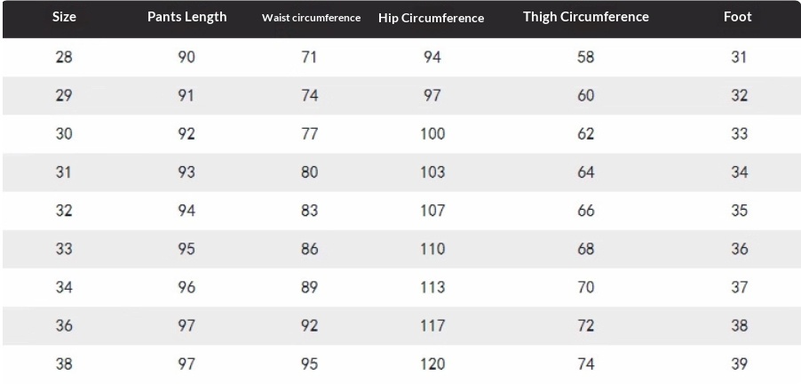 Size: 28, 29, 30, 31, 32, 33, 34, 35, 36, 37, 38, 39, 40