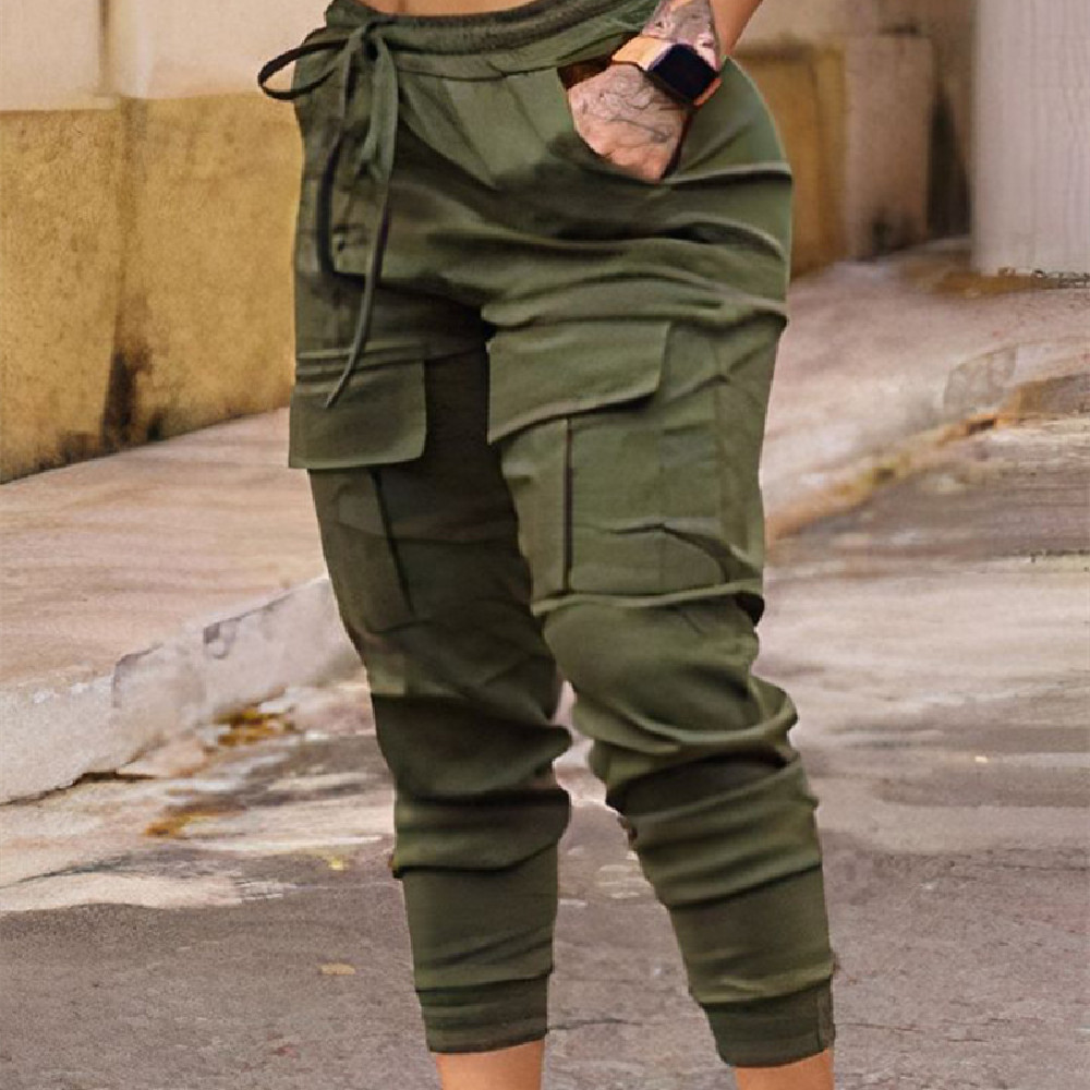 Slim Fit Drawstring Waist Covered Pocket Overalls