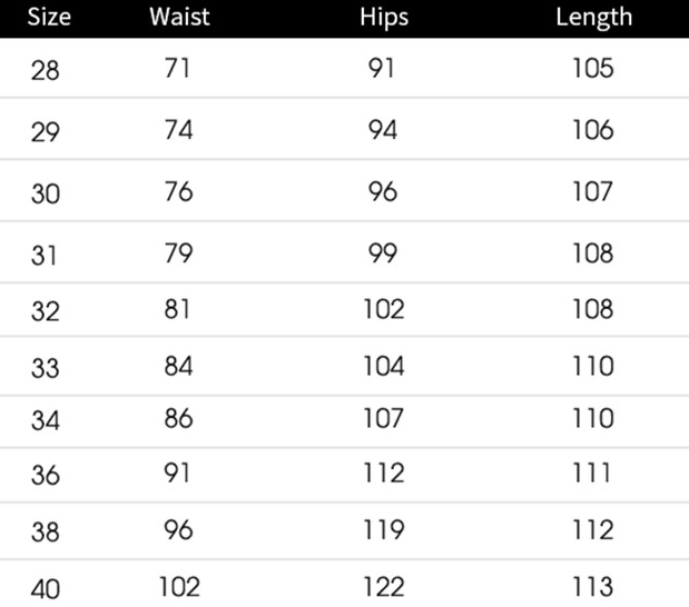Size: 28, 29, 30, 31, 32, 33, 34, 36, 38, 40