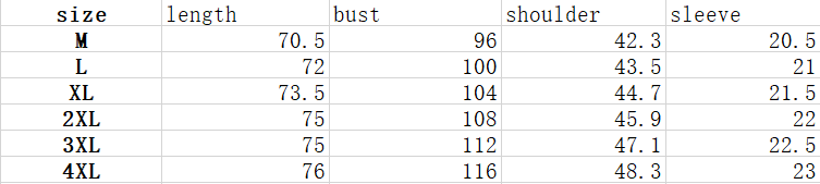 Size: M, L, XL, XXL, XXXL, XXXXL