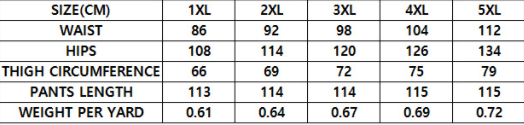 Size: 1XL, 2XL, 3XL, 4XL, 5XL