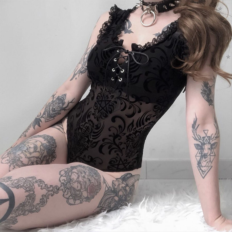 Slim Fit Sheer Lace Bottoming Shirt With Flock Print