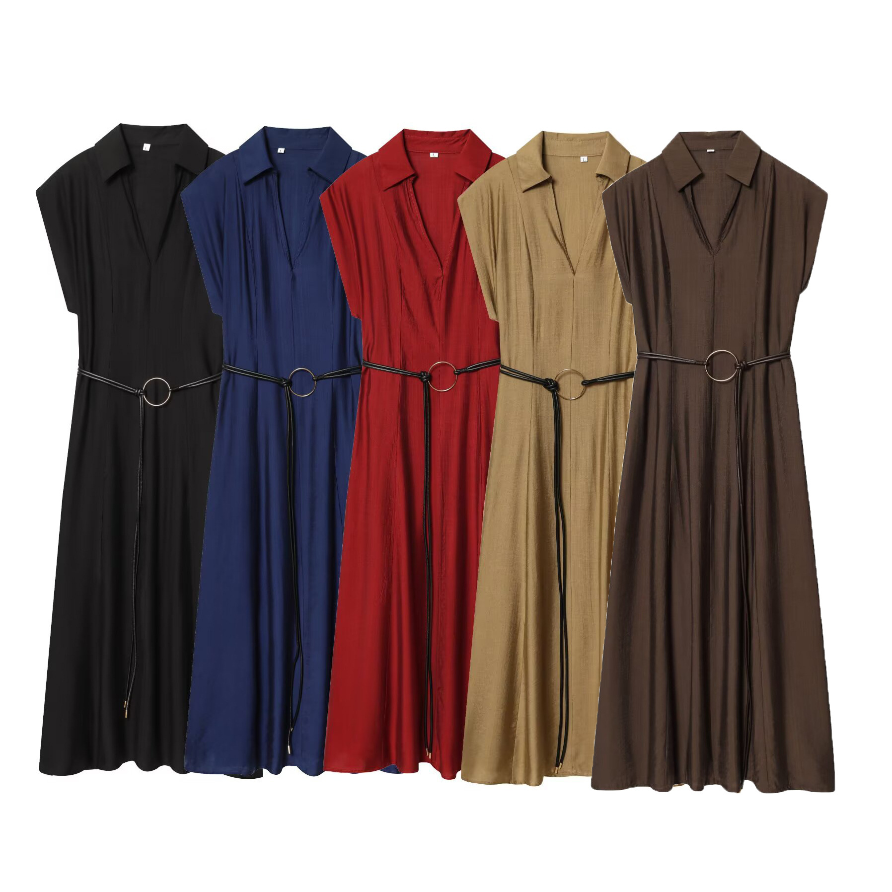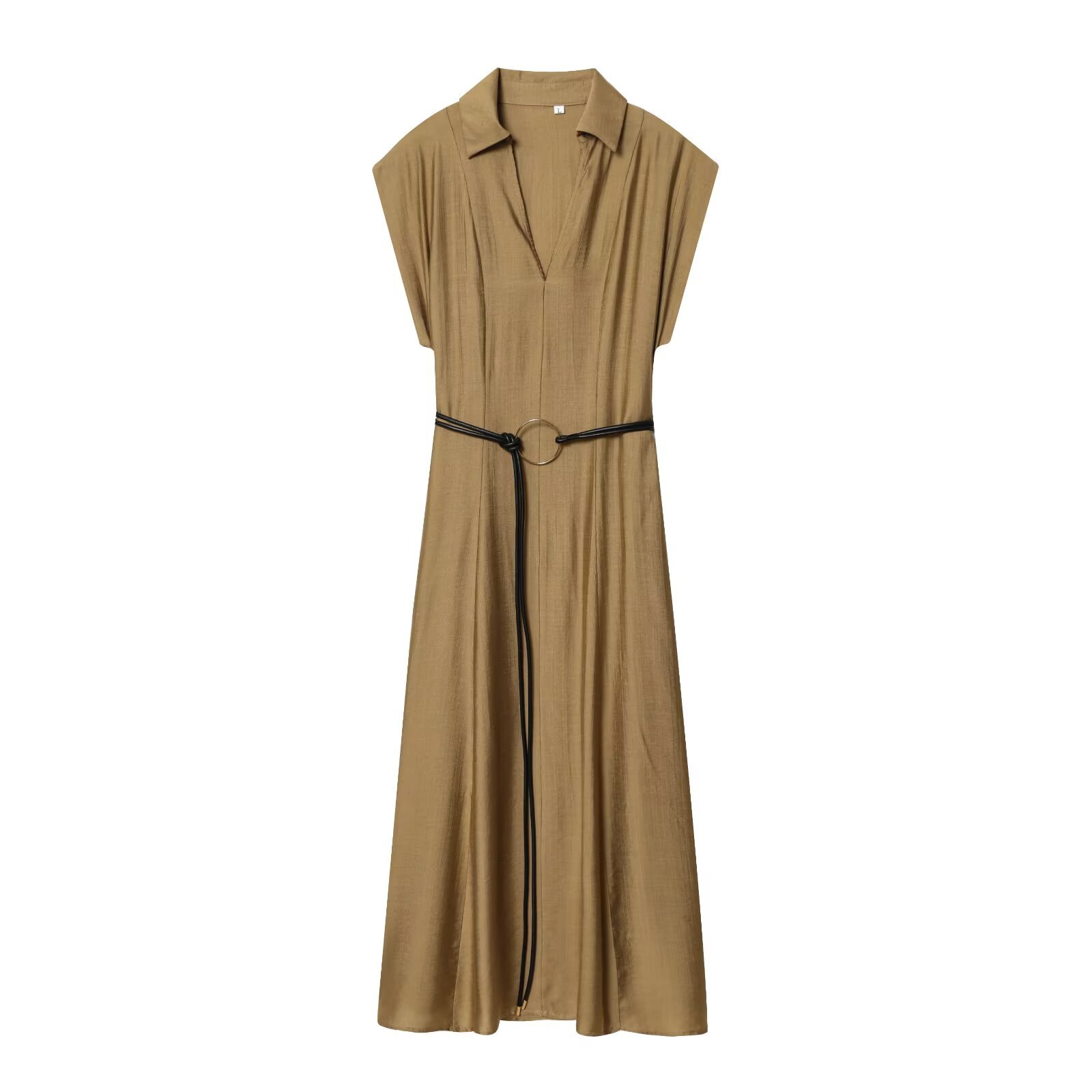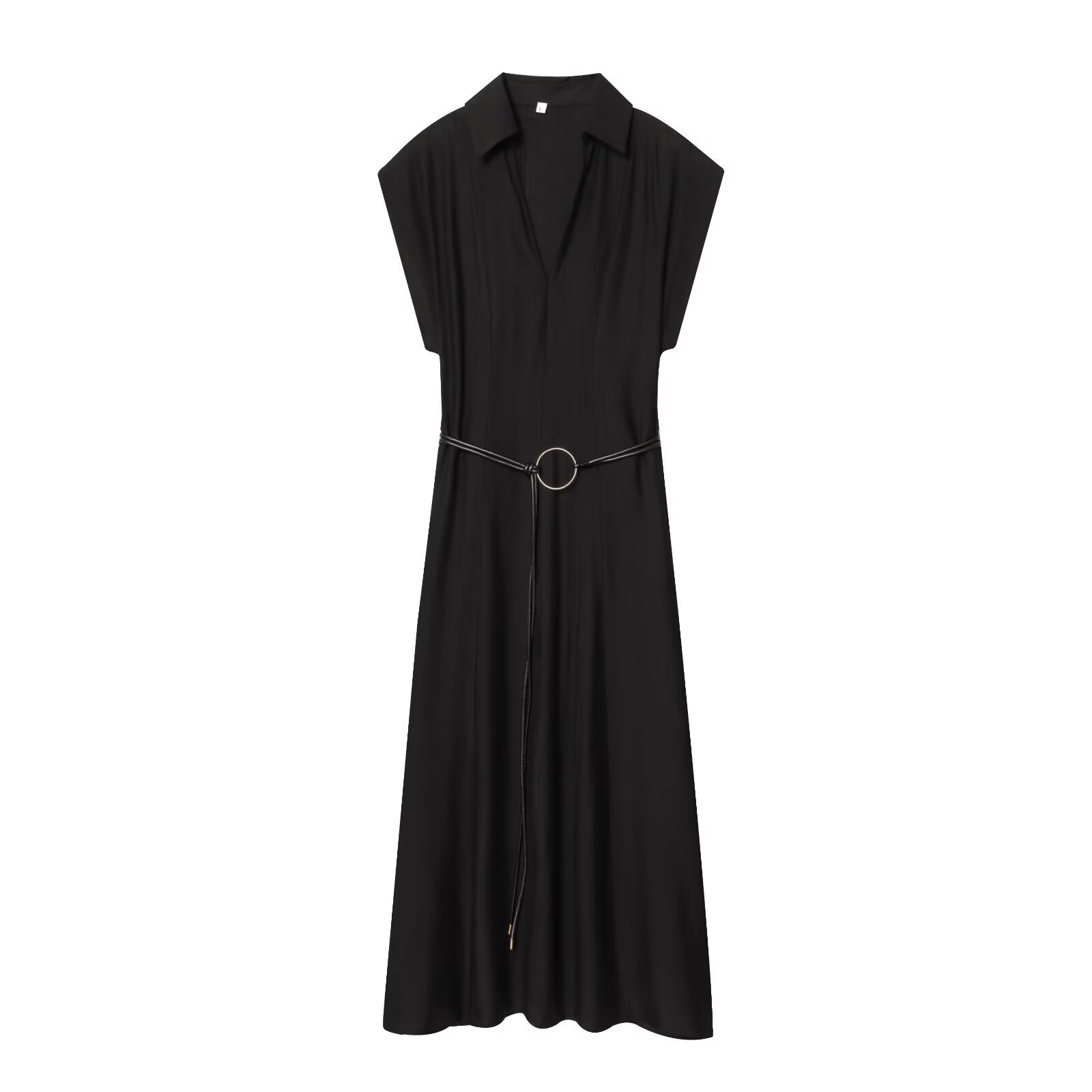 Slim Fit Waist Belt Jumpsuit Mid Length Dress