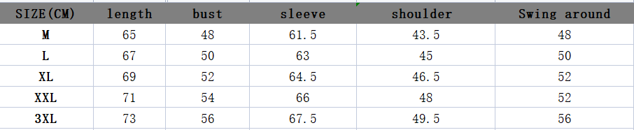 M, L, XL, 2XL, 3XL, 4XL, 5XL
