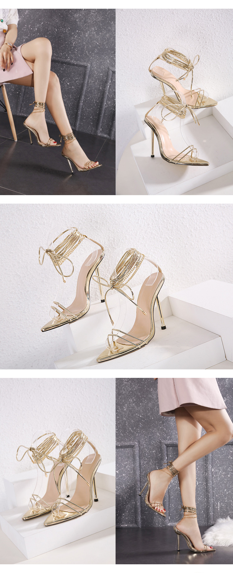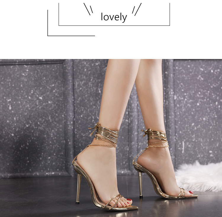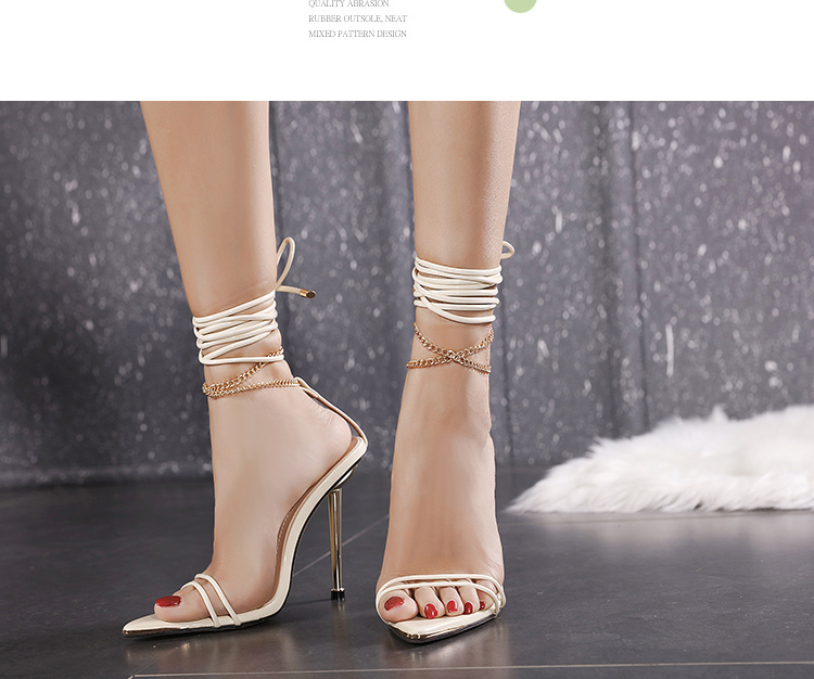 Slim Pointed Chain Roman Lace Up High Heeled Sandals