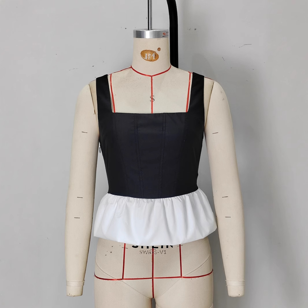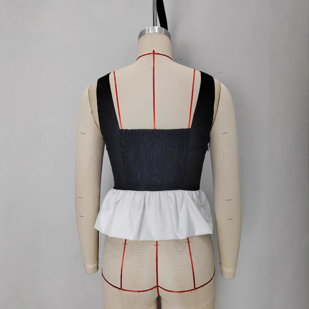 Slimming A-line Skirt With A Patchwork Pleated Top