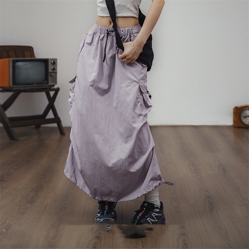 Product information: Color: khaki, Taro purple Main fabric composition: Polyester Fiber Size: S,M,L Skirt length: long skirt