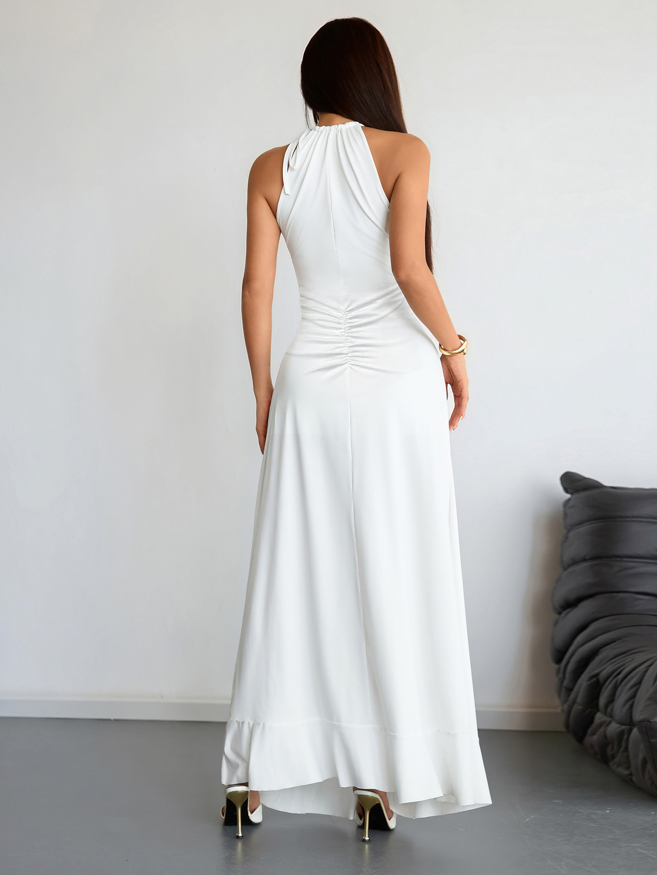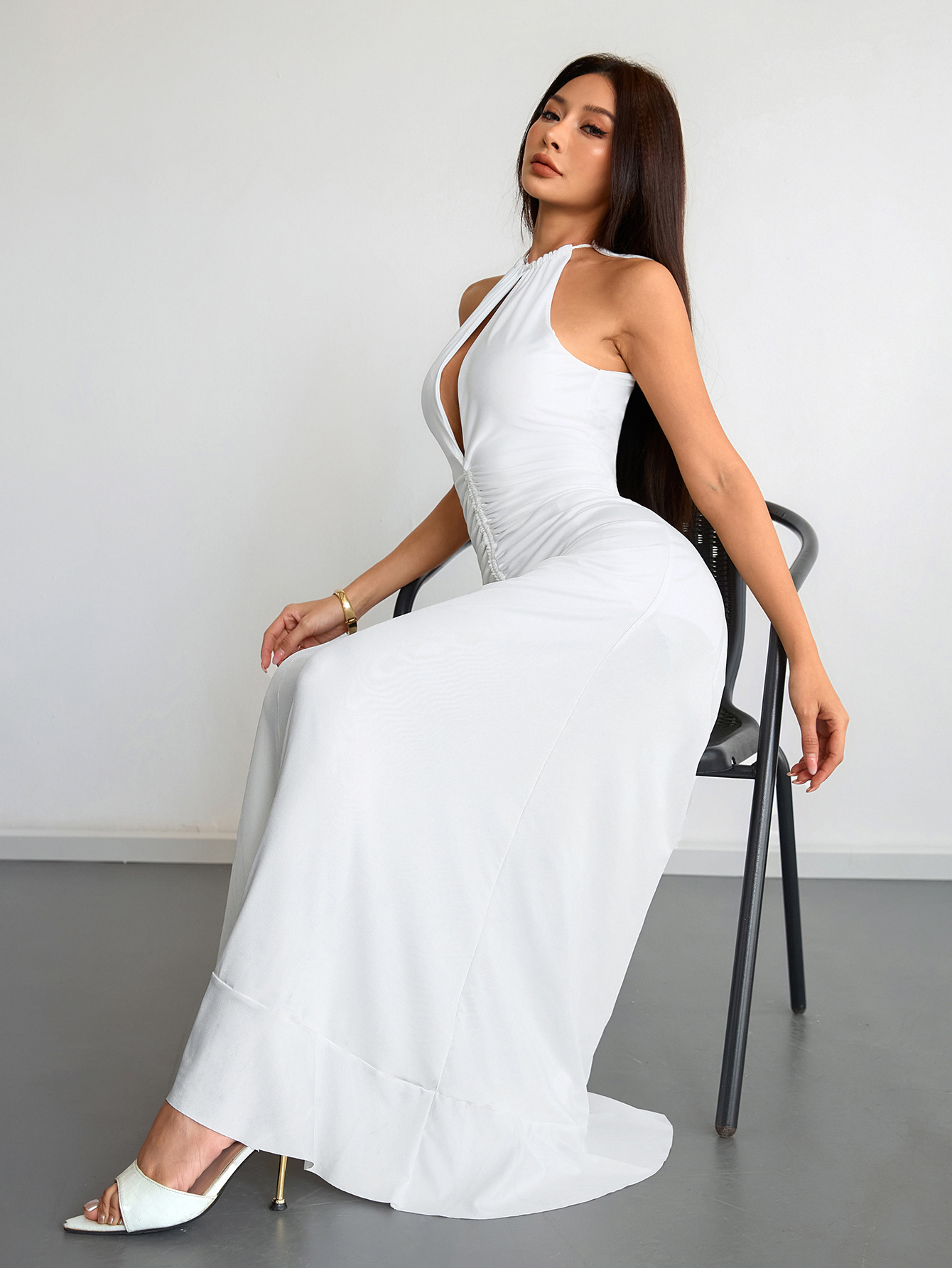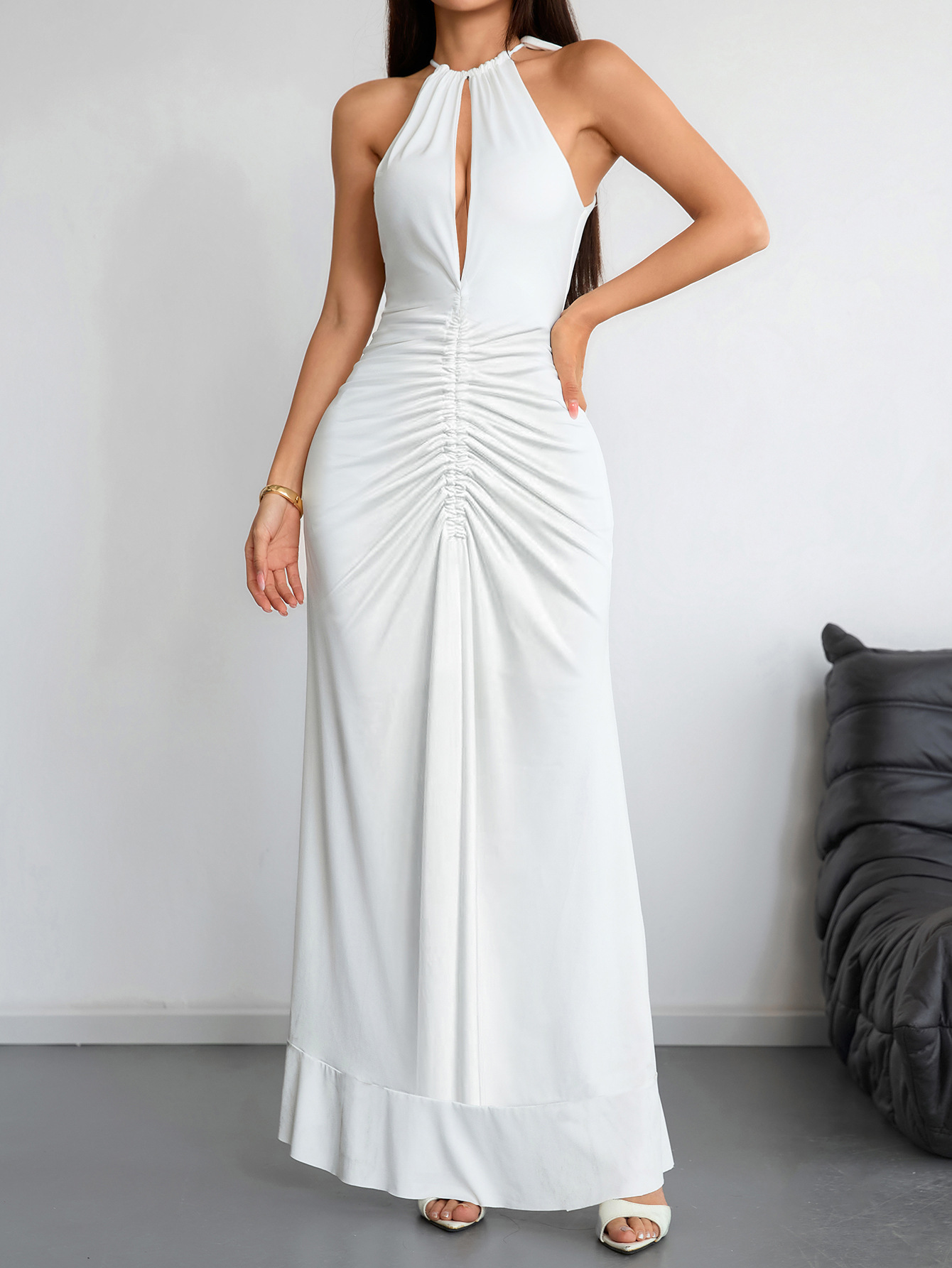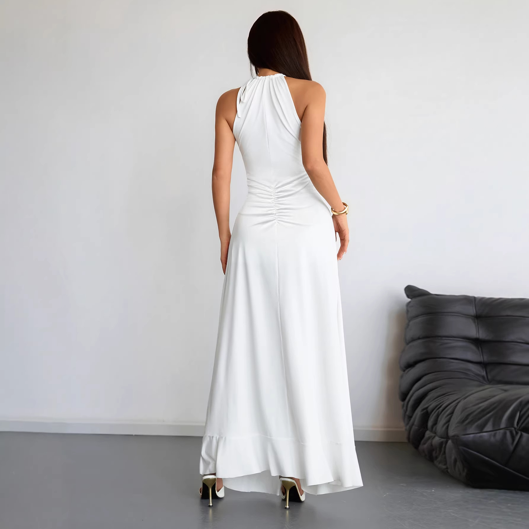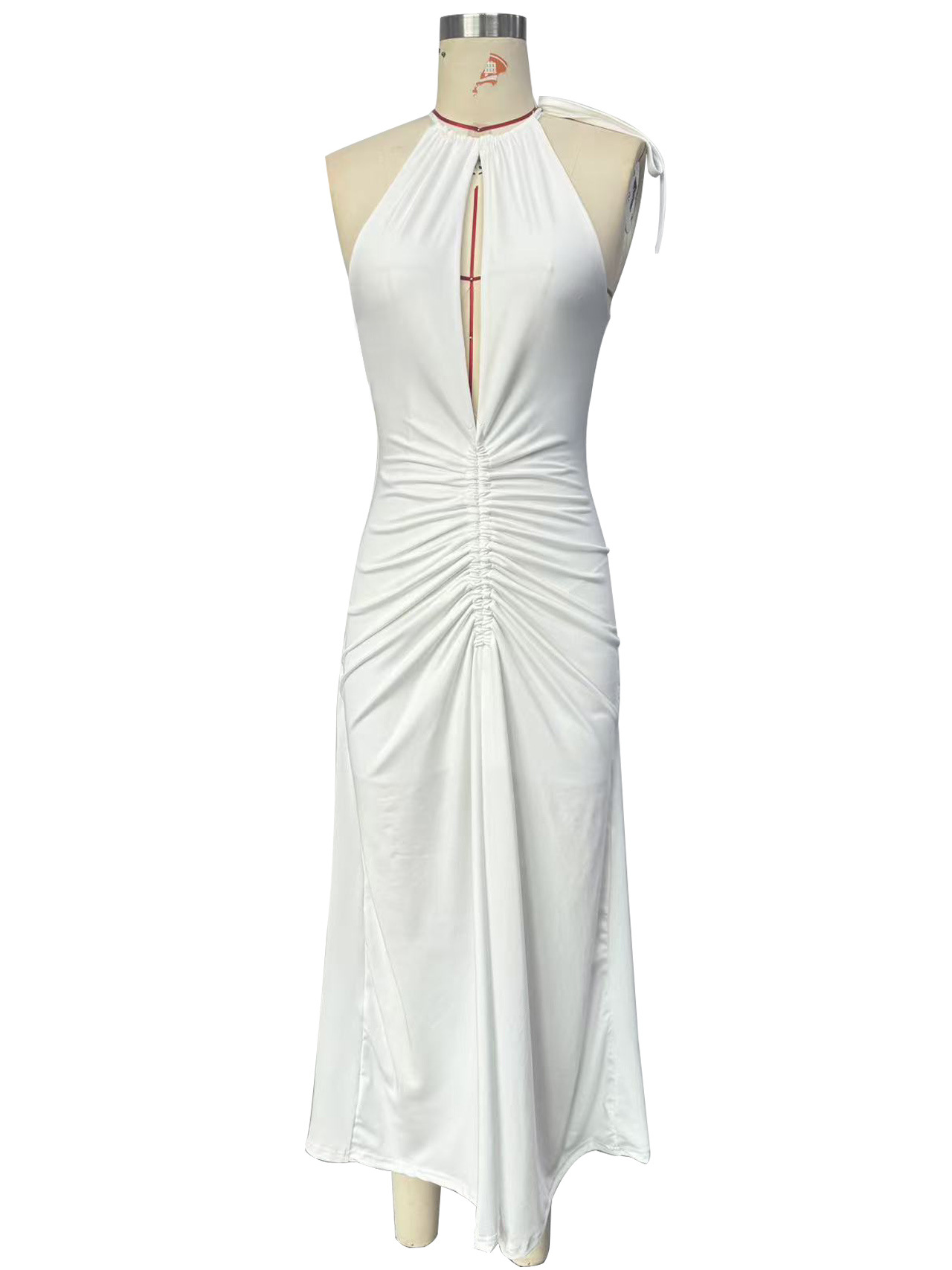 Slimming Pleated Solid-Color Womens Summer Dress